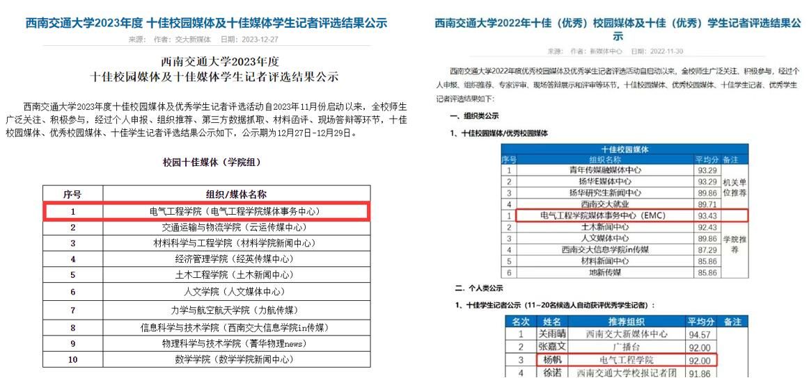 av大平台 坚持落实“立德树人”根本任务,牢牢把握“围绕中心,服务大局”的宗旨,进一步加强av大平台新闻 信息宣传工作的组织领导和有效管理。学院健全新闻宣传工作机制,培养了一批新闻宣传学生骨干,2004年成立《电气人》编辑部,2007年,编辑部正式更名为av大平台 媒体事务中心(EMC),该组织多次获评av大平台 “十佳校园媒体”,其中,2022年度、2023年度连续两年以全校第一的成绩获评“十佳”。