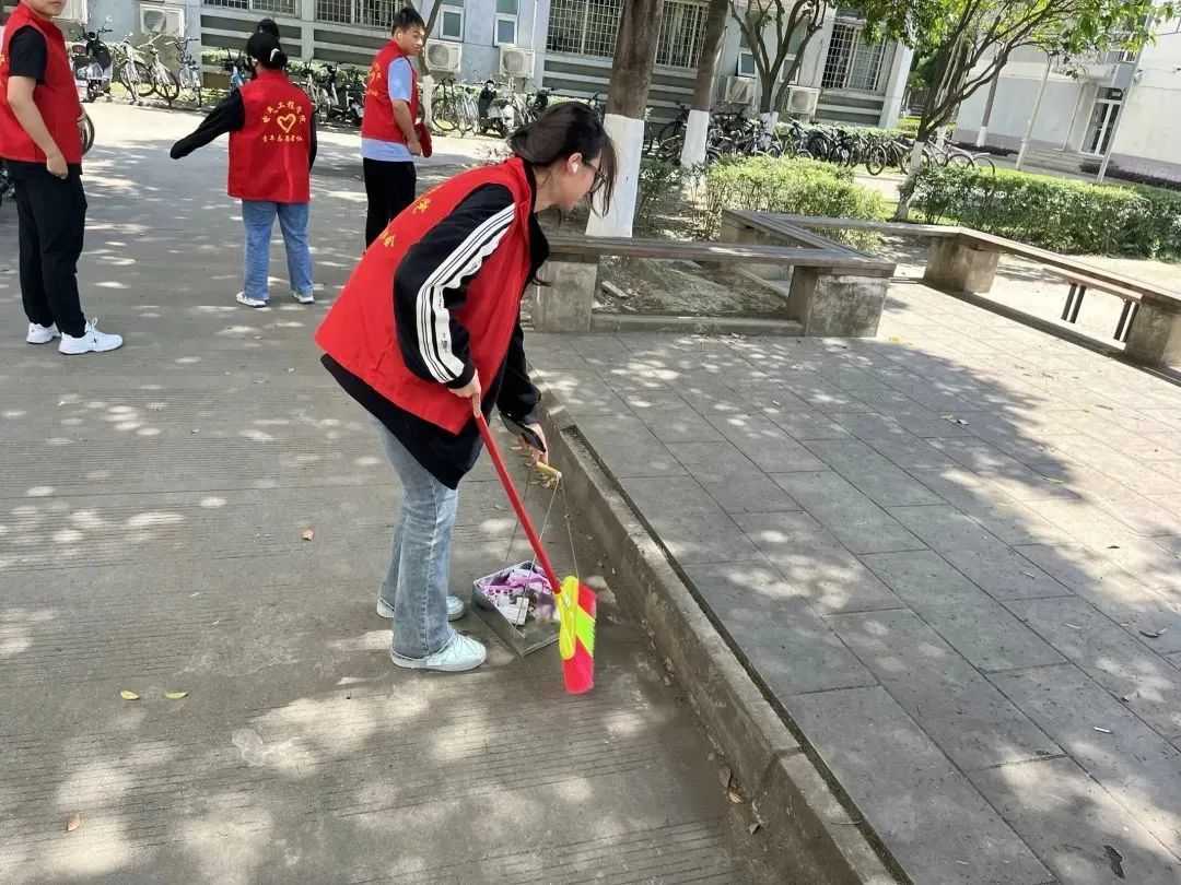 下午14:00在天佑斋17栋园区,电气学院学生集体清理落叶、垃圾、杂草等,规范摆放共享单车,保持园区的整洁美观。同时,对园区内的公共设施进行清洁和维护,确保设施的正常使用。保证园区自习室的干净整洁,旨在增强学生的公共卫生意识,为同学们提供一个舒适、整洁的学习环境。