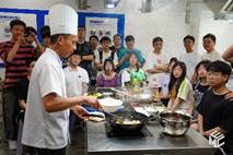 而后同学们三人一组,利用厨师长为大家准备好的食材,亲手烹饪菜肴。略显笨拙的刀法、小心翼翼地倒油……虽然大家的厨艺并不高超,但是热闹的氛围与止不住的欢声笑语展现出了同学们对于烹饪的热情。亲手烹饪的菜哪怕不完美,也依旧是一道意义非凡的美味。