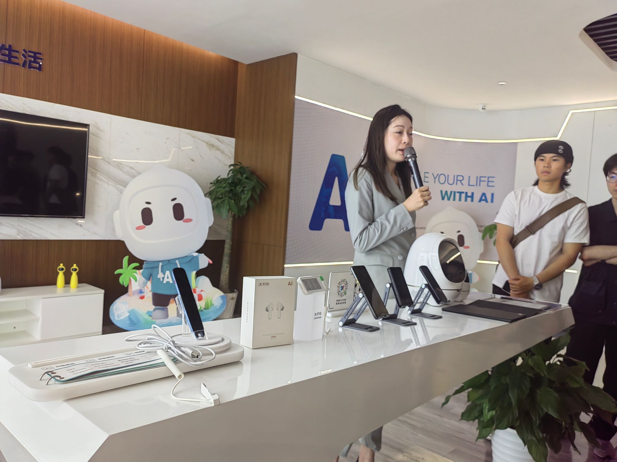 工作人员还展示了办公本的AI助手功能,比如把几个小时的会议记录转为会议纪要,高效便捷。讯飞翻译机的功能也很强大,可以实现多种语言之间的实时翻译。