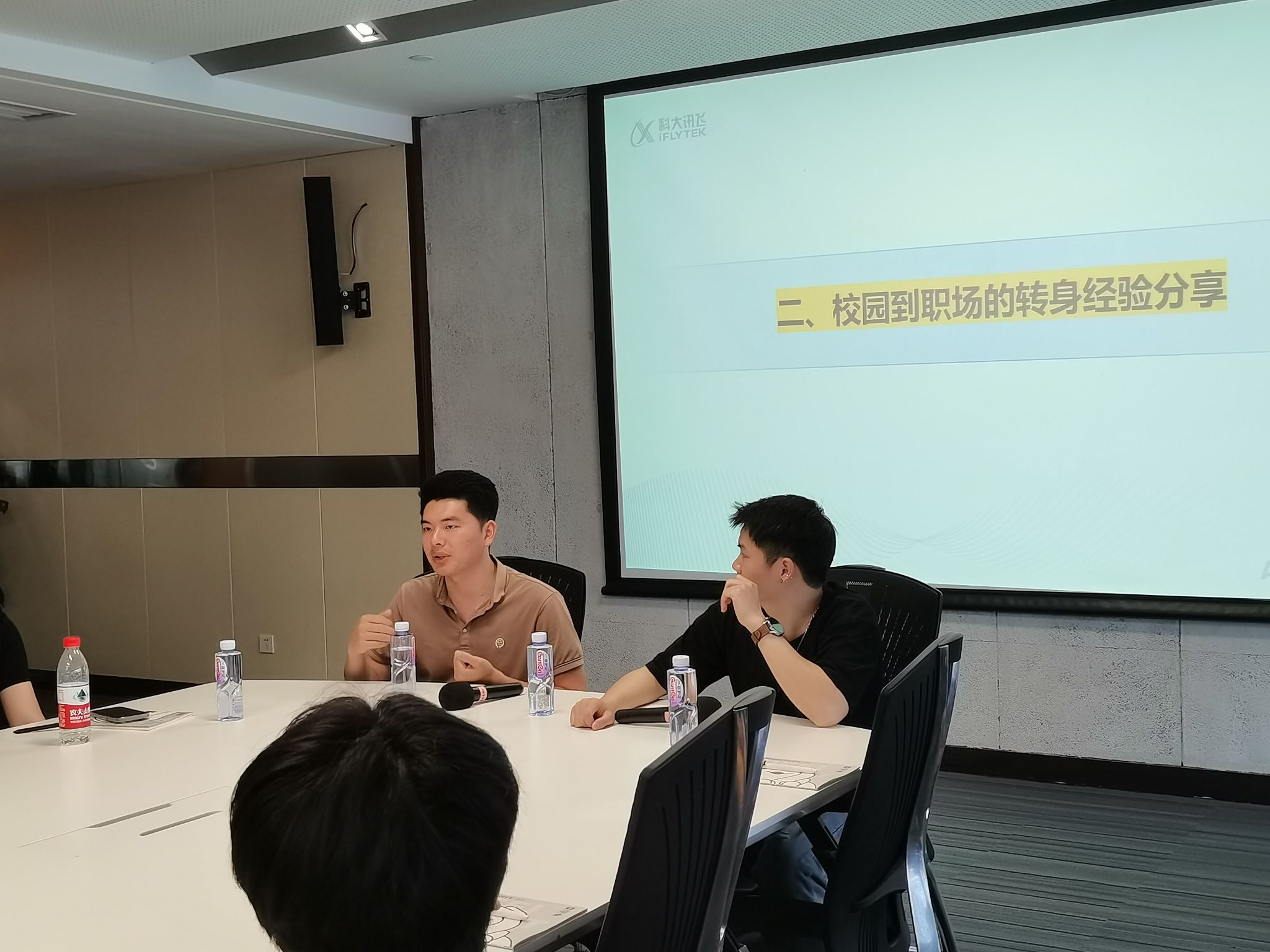 随后,主持人邀请了科大讯飞在职的学长进行经验分享及交流答疑。两位学长从如何准备找工作、校园到职场等方面进行了经验分享,大家都受益匪浅。