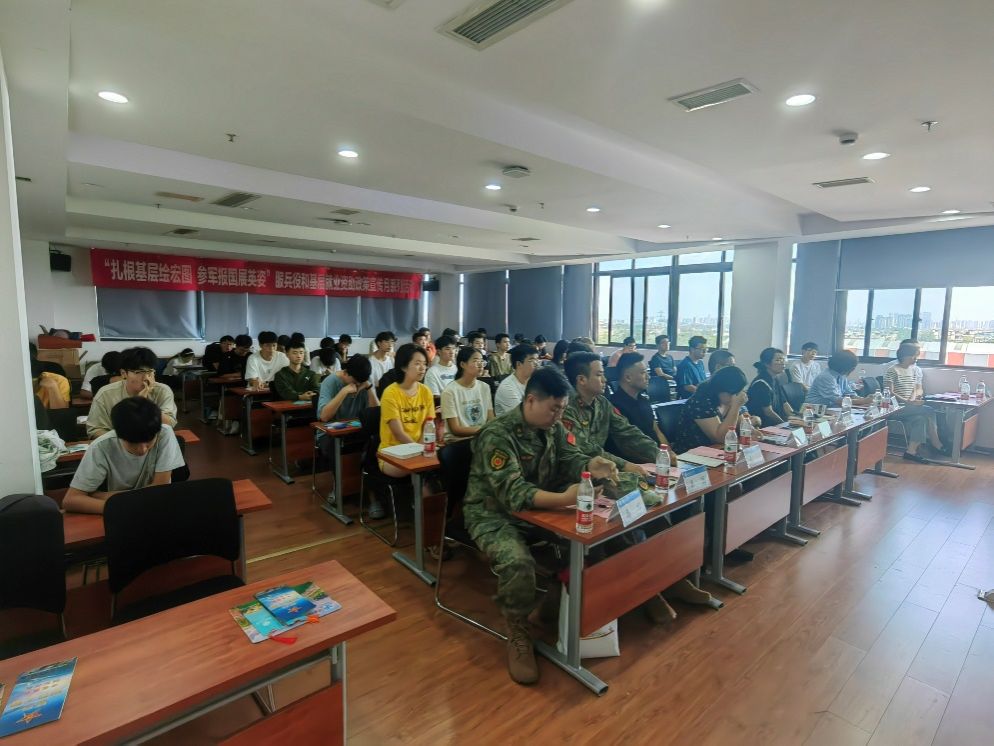 学院2021级本科生、曾于2021年应征入伍并服役于中国人民解放军东部战区陆军第71集团军某旅车载155自行加榴炮营的孙少杰同学则作为退役大学生向同学们真挚地分享了他从军的初衷、军营生活中的挑战与成长。同时向大家详细介绍了入伍报名条件、报名流程以及退伍大学生的待遇及政策。“参军不仅是职业选择,更是责任和荣誉的体现”,他的故事中,既有艰苦训练的汗水,也有完成任务的自豪,独到的见解和个人经验让现场同学直观地理解军旅生活。分享最后孙少杰号召在校同学勇担时代使命,把个人的理想追求融入党和国家事业之中。