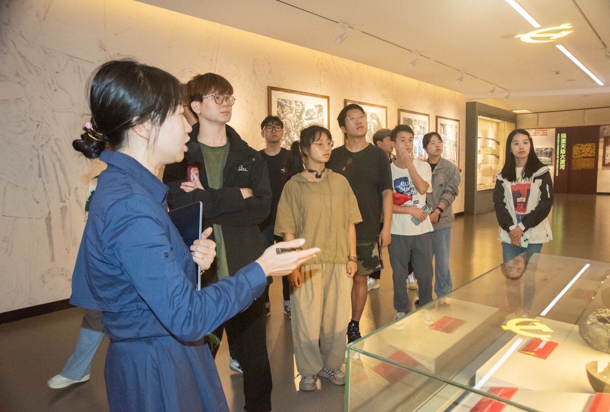 6月28日上午,团队前往中国工农红军强渡大渡河纪念馆。纪念馆展厅以弘扬红军长征精神为主题,分为长征、大渡河战役、红军长征过雅安、翼王悲歌、历史评述等五个部分。在讲解员的带领下,成员们通过图片、实物等文化空间和情景体验,沉浸式体验红军大无畏的革命事迹。