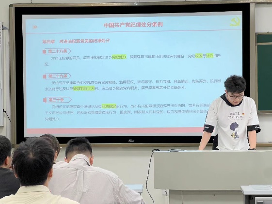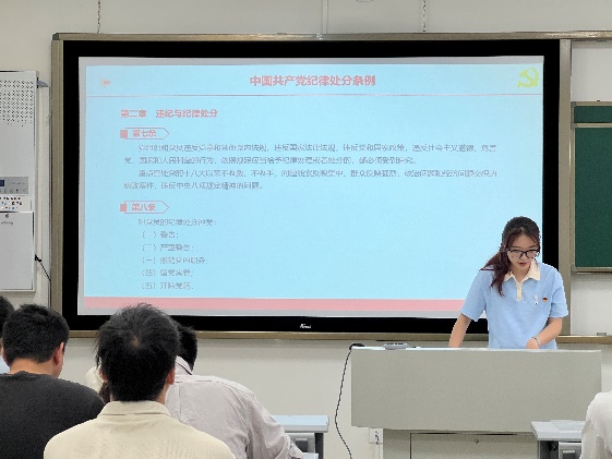 2024年6月7日上午10:00,硕士2023级-04班党支部在犀浦校区X30601开展“持续深入学习《条例》”主题党日活动,本次党日活动我们紧接上一次学习的《条例》内容,原原本本、逐字逐句的将《条例》内容呈现出来。