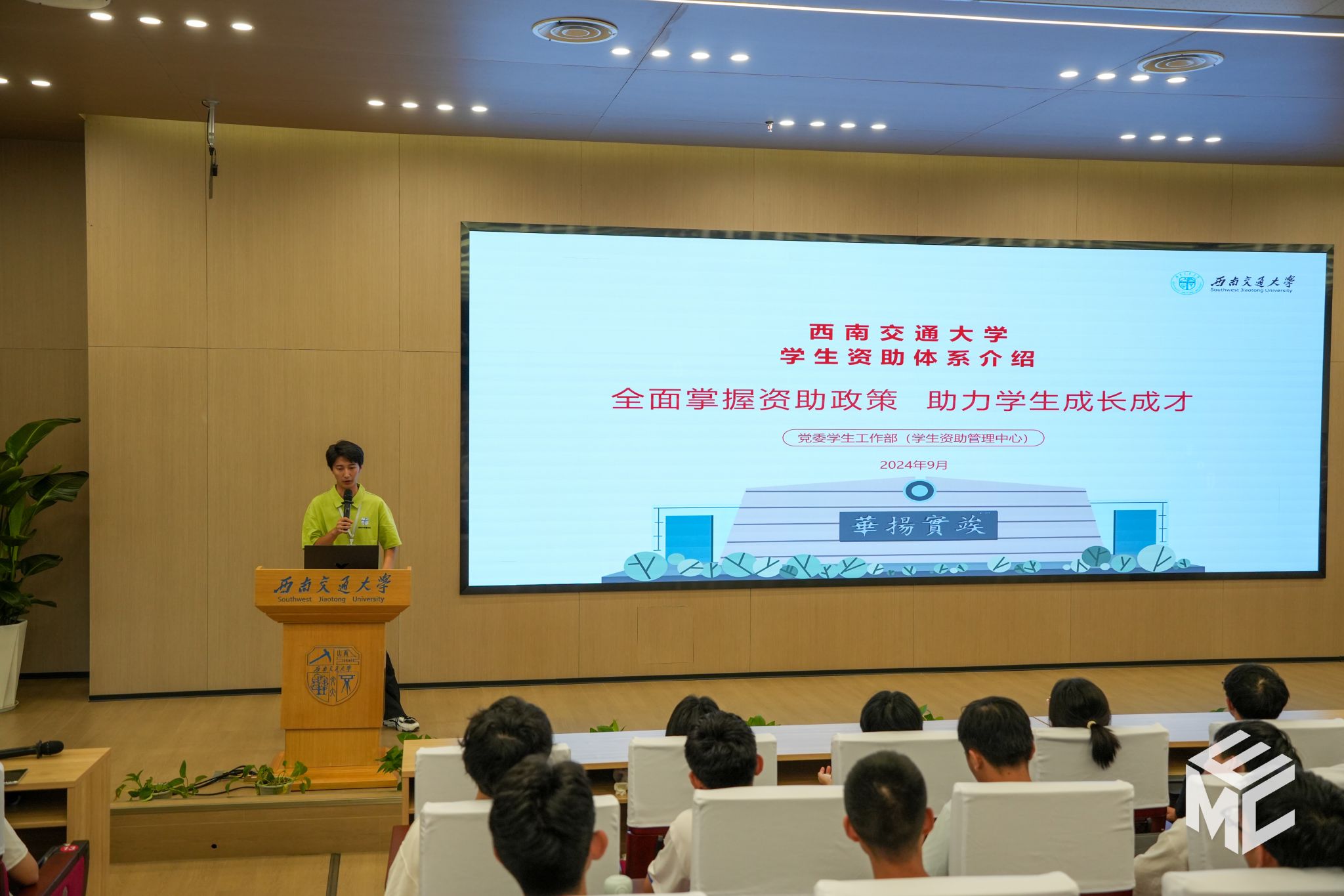 2024年9月2日15时,av大平台 本科2024级在犀浦校区图书馆报告厅开展学生资助专题讲座,主讲人为学院资助工作负责人宋治东老师、学校学生资助管理中心资助大使宣讲团成员王菲菲、王鑫同学。本科2024级辅导员老师赵娜、杨之溢、艾效天及全体新生共同参加。