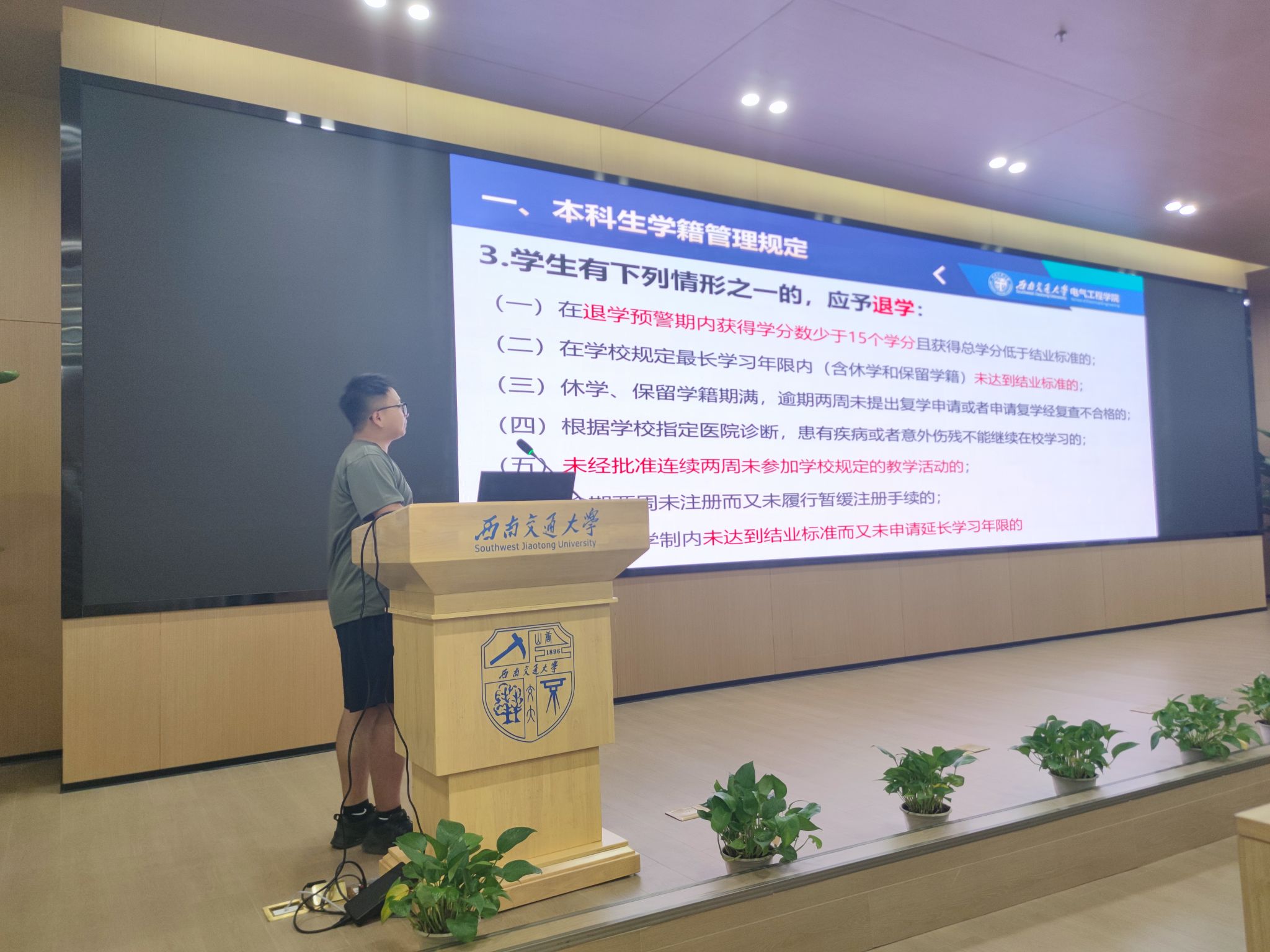 辅导员老师从学习相关、纪律相关、奖助相关、发展相关、常见问题五个方面向同学们介绍了学校的本科生管理规章制度。