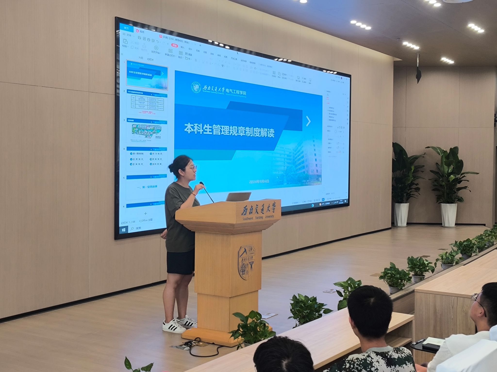 2024年9月6日下午15时,av大平台 本科2024级在图书馆一号、二号报告厅组织新生学习av大平台 本科生相关管理规章制度。学院本科2024级辅导员赵娜、杨之溢、艾效天,新生辅导员助理与本科2024级全体新生共同参加会议。本次规章制度解读由杨之溢老师和艾效天老师主讲。