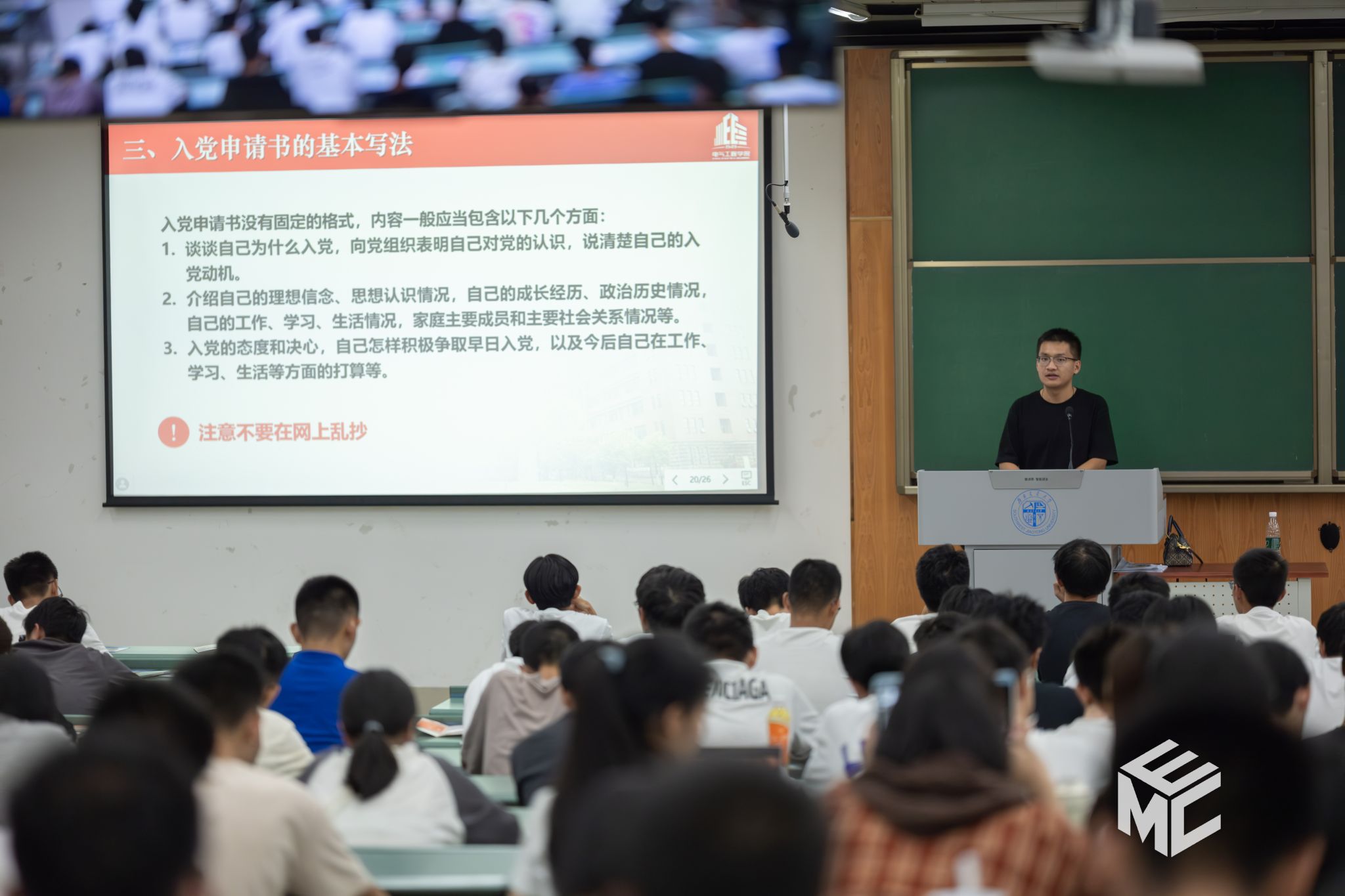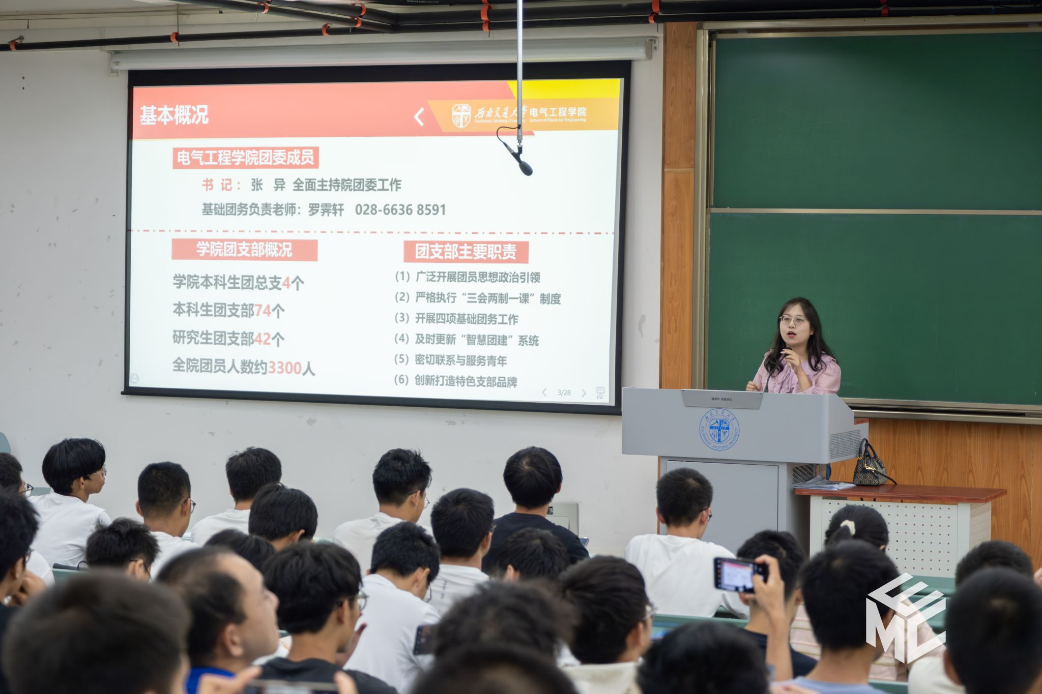 2024年9月25日晚19时,av大平台 本科2024级在犀浦校区X4350、X4352开展党员发展、共青团基础团务讲座。此次讲座由学院辅导员赵娜老师和孙海洋老师主讲,学院本科2024级全体新生共同参加。