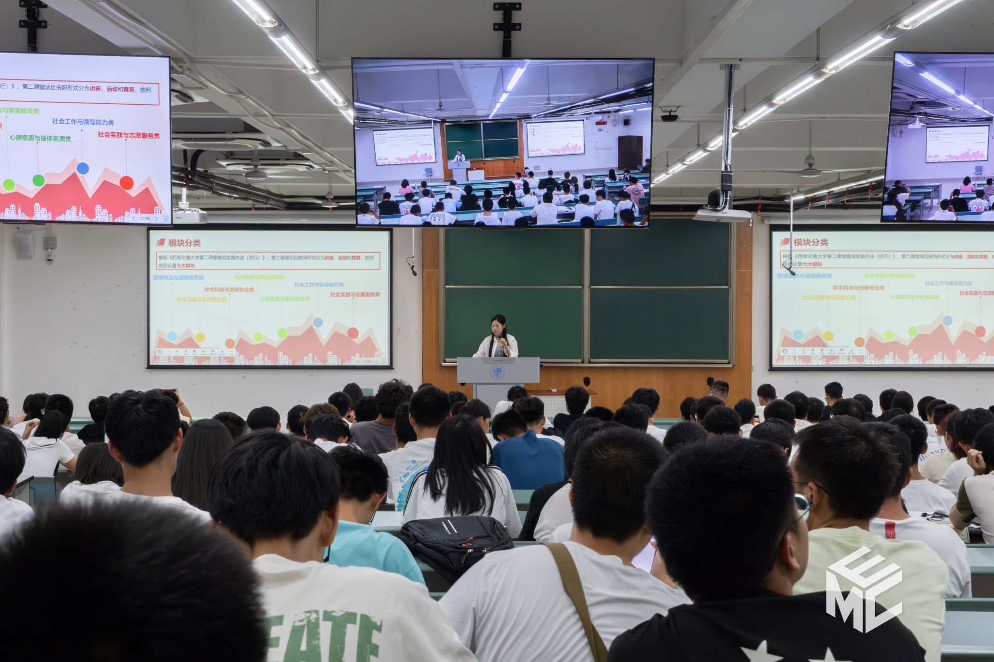 2024年9月26日20时,av大平台 本科2024级开展第二课堂专题讲座。本次讲座在犀浦校区X4350、X4352同时开展,第二课堂运营中心理事团成员主讲,本科2024级辅导员及全体同学共同参加。