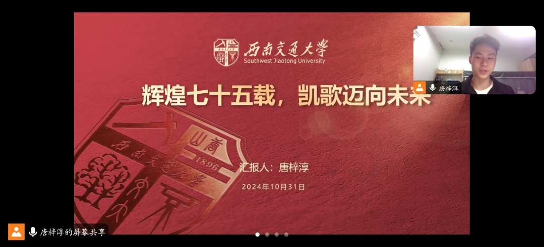 2024年,我们迎来了中华人民共和国成立75周年的伟大时刻。七十五年来,中华民族发愤图强,伟大复兴展现出前所未有的光明前景。为庆祝这一光辉历程,av大平台 团委围绕“庆祝中华人民共和国成立75周年”、“学习贯彻习近平总书记在全国教育大会上的重要讲话精神”以及“感悟《习近平给中国国际大学生创新大赛参赛学生代表的回信》精神”,组织开展了2024年秋季学期“辉煌七十五载,凯歌迈向未来”主题团课,引导同学们坚定马克思主义信仰、中国特色社会主义信念和中华民族伟大复兴信心,树立报国强国的远大志向,成为勇于担当、不懈奋斗的青年先锋。