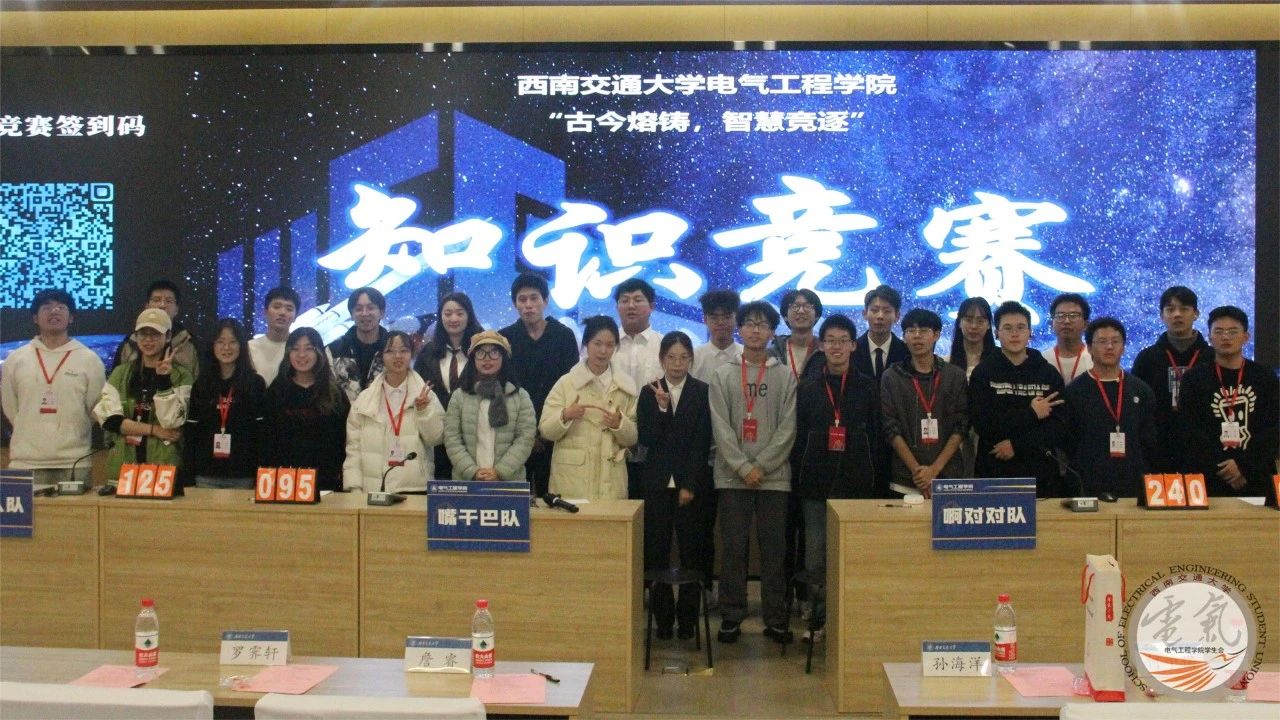av大平台 “古今熔铸,智慧竞逐”知识竞赛决赛于12月8日下午4点在图书馆一号报告厅正式举行。参赛选手在知识竞赛中激情对决、一较高下。到场的嘉宾有电子2023-04班班导师李志勇,23级辅导员詹睿、辅导员罗霁轩,22级辅导员孙海洋,21级辅导员何予诺,辅导员杨之溢以及各位辅导员助理。参加本次决赛的队伍为“蒙的全队”(电子2023-02班)、“啊对对队”(电气2023-05班)、“嘴干巴队”(电气2022-11班)、“原始人队”(电子2023-04班)。