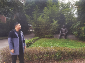 随后,支部成员线下齐聚犀浦校区教学楼旁,围绕多位科学家的雕像开展现场讲解活动。支部书记结合现场的科学家雕像为大家讲解了几位杰出科学家的感人事迹。从雕像下朴实却庄严的铭文中,党员们仿佛看到了一代代科研工作者为了祖国科技事业不懈奋斗的身影。书记说到:“每一位科学家都曾是像我们一样的青年学生,他们的成功来源于热爱祖国的初心和脚踏实地的实干。 科学家精神不仅是爱国奉献和追求卓越,更是新时代党员在科研道路上勇担使命的动力源泉。”