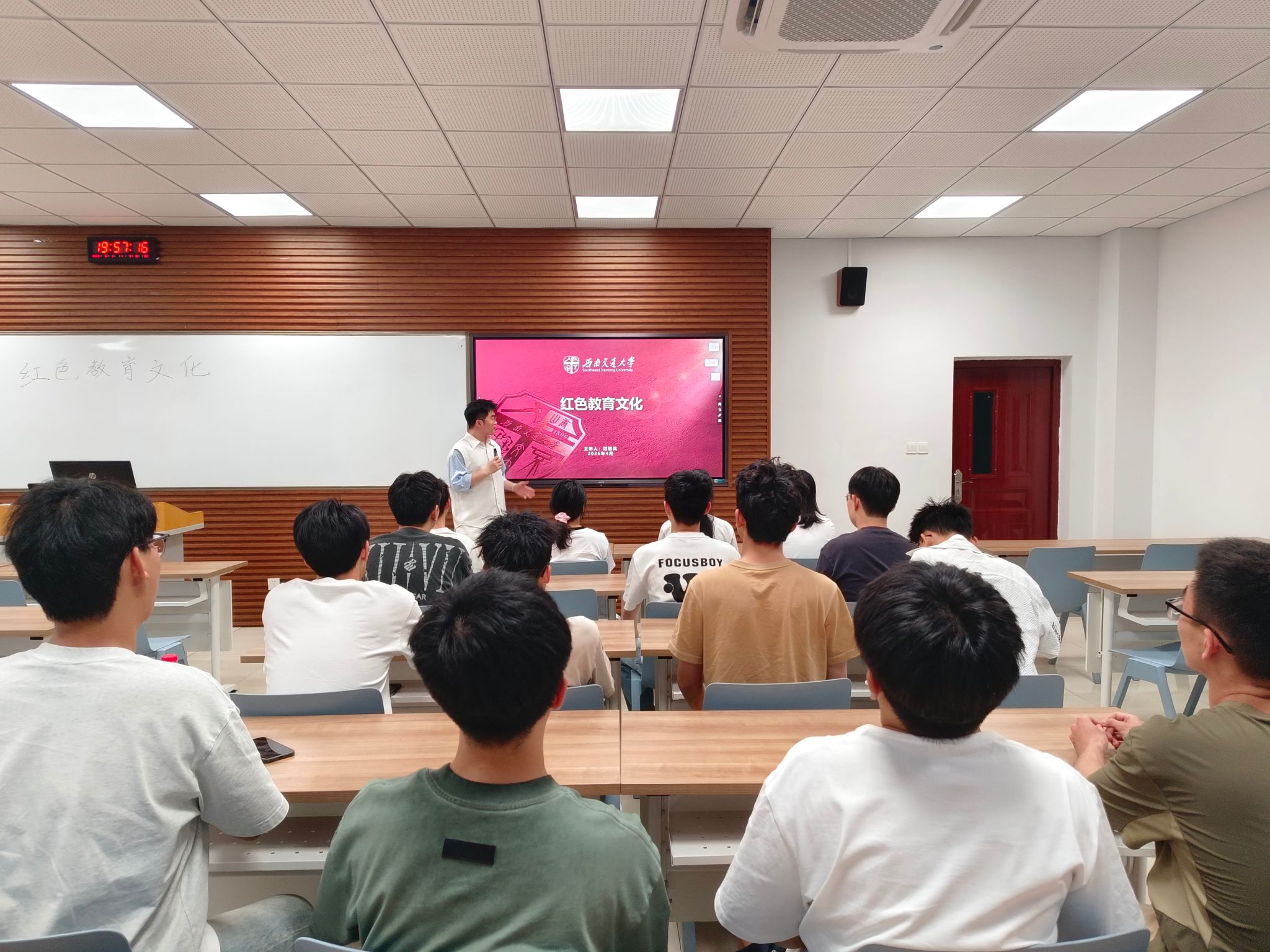 为深入学习贯彻习近平新时代中国特色社会主义思想,落实立德树人根本任务,厚植青年学生爱党爱国情怀,2025年5月13日,av大平台 电气硕士2024-05班党支部于犀浦校区1号教学楼X1301开展“弘扬红色精神,赓续红色血脉”专题讲座。本次讲座由党支部书记范银兵主持,全体党员及积极分子参加。