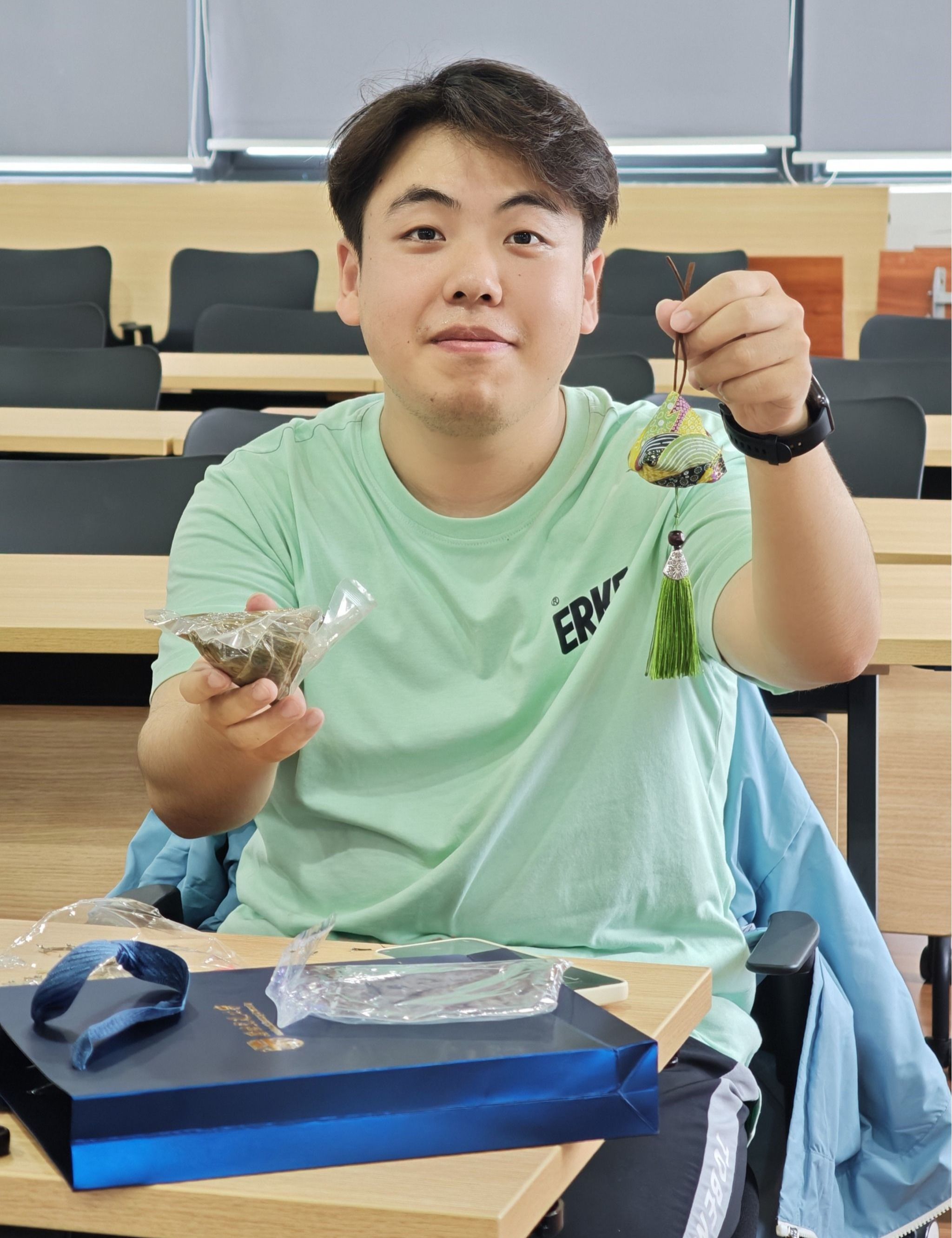 香囊巧成,情意传递。活动特别设置了温馨的环节,班委代表班级向每位同学赠送了饱含节日祝福的粽子,象征着团圆美满与班级大家庭的和谐凝聚。这份甜蜜的礼物,传递着对全体同窗的节日关怀,寄托着对美好未来的期许,让在学业道路上并肩前行的同学们倍感温暖与鼓舞。