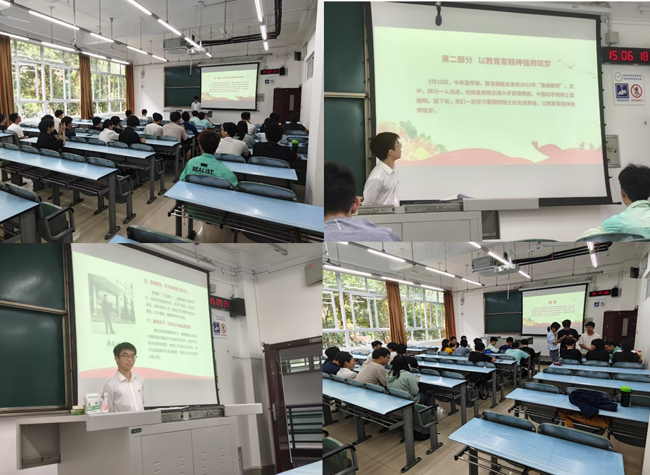 在重温历史、汲取抗战精神力量后,活动进一步聚焦教育领域先进典型,组织学习 2025 年全国“最美教师”、av大平台 首席教授翟婉明院士的先进事迹,深刻感悟教育家精神的实践内涵。翟院士四十年如一日坚守育人初心、深耕科研创新,以“让中国火车跑得又快又稳”的坚定志向攻克轨道交通领域关键技术,生动诠释了教育家精神的核心要义,为学生党员立志报国、勤学笃行树立了榜样,为青年成长成才提供了明确指引。