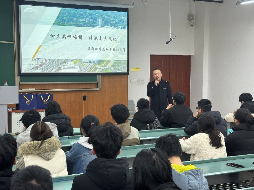 为搭建在校生与行业一线优秀校友的沟通桥梁,传承竢实扬华、自强不息的交大精神,12月4日下午,av大平台 党员发展服务中心在犀浦校区X4156教室成功举办树立典型榜样,传承交大文化——与轨道交通建设一线优秀校友对话活动。本次活动邀请到成都铁路局动车段高级动车组机械师、av大平台 “青年讲师团”成员张宏伟校友担任主讲嘉宾,60余名来自不同学院、不同年级的在校本科生参与活动。