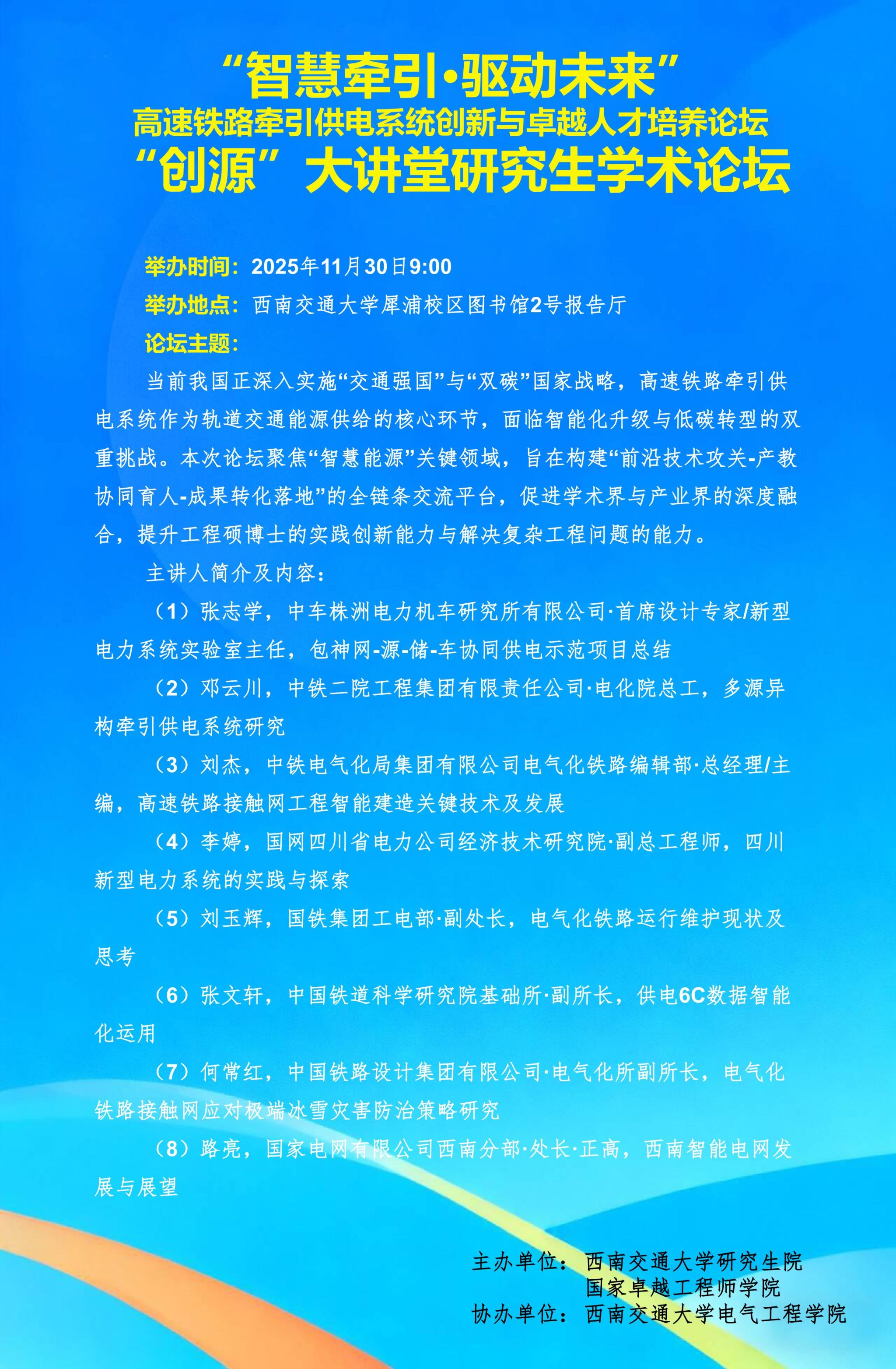 智慧牵引·驱动未来——高速铁路牵引供电系统创新与卓越工程人才培养论坛会议