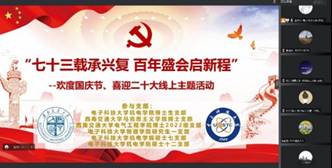 9月30日上午10点,av大平台 博士2022级党支部联合电子科技大学机电学院博士生支部、av大平台 马克思主义学院博士支部、电子科技大学物理学院研究生一支部、电子科技读大学机电学院硕士七支部、电子科技大学机电学院硕士十二支部共同开展“欢度国庆节、喜迎二十大”线上主题活动。活动由电气科技大学机电学院博士生支部书记范昊洋同志主持,六个支部共计两百多名党员参加。