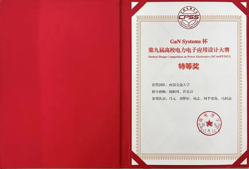 创新电气 竞赛佳绩|电气学子在“GaN Systems”杯第九届高校电力电子应用设计大赛斩获特等奖