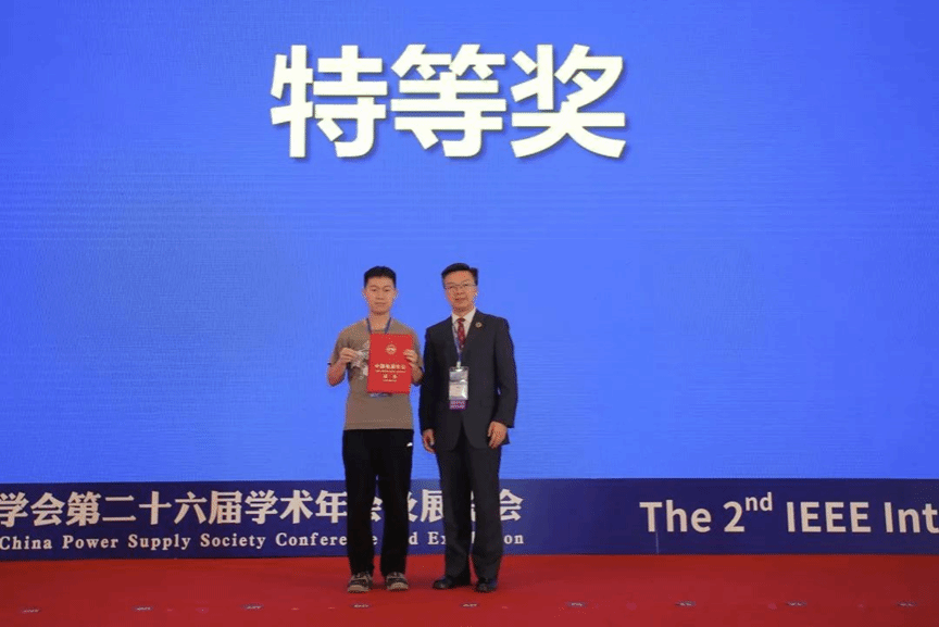 ▲中国电源学会理事长、西安交通大学刘进军教授为特等奖获奖队av大平台 代表队颁奖