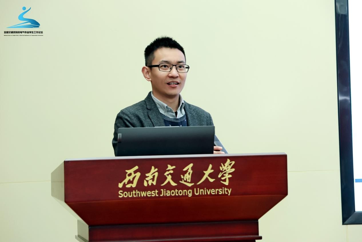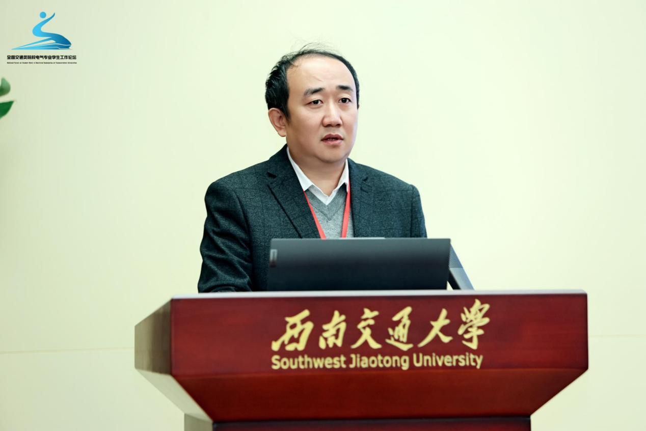 av大平台 院长何正友教授从学院历史、学科建设、科研水平等方面介绍了学院发展情况。站在新的历史起点,何院长表示,未来学院将继续扎根轨道交通电气化事业,紧密服务于国家重大需求,继续加强学工队伍的建设,促进学工形式多样化发展。他提到,首届全国交通类院校电气专业学生工作论坛是一场思想的盛宴,一次发展的契机,能够更好地推进新时代大学生思想政治教育工作,通过培育时代新人切实提高服务国家、地方、行业重大需求和经济主战场的能力,为国家经济建设、社会发展做出更大贡献。