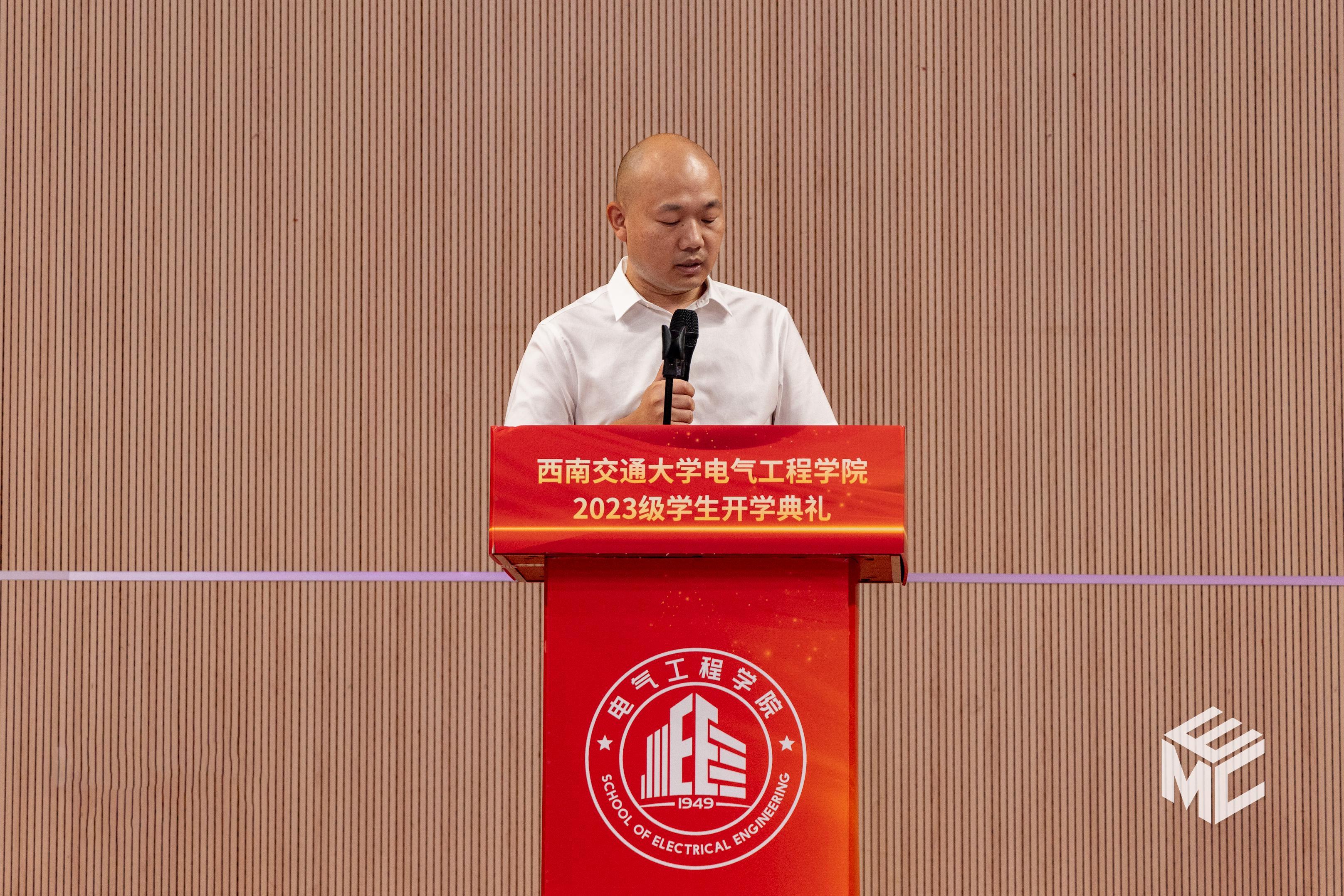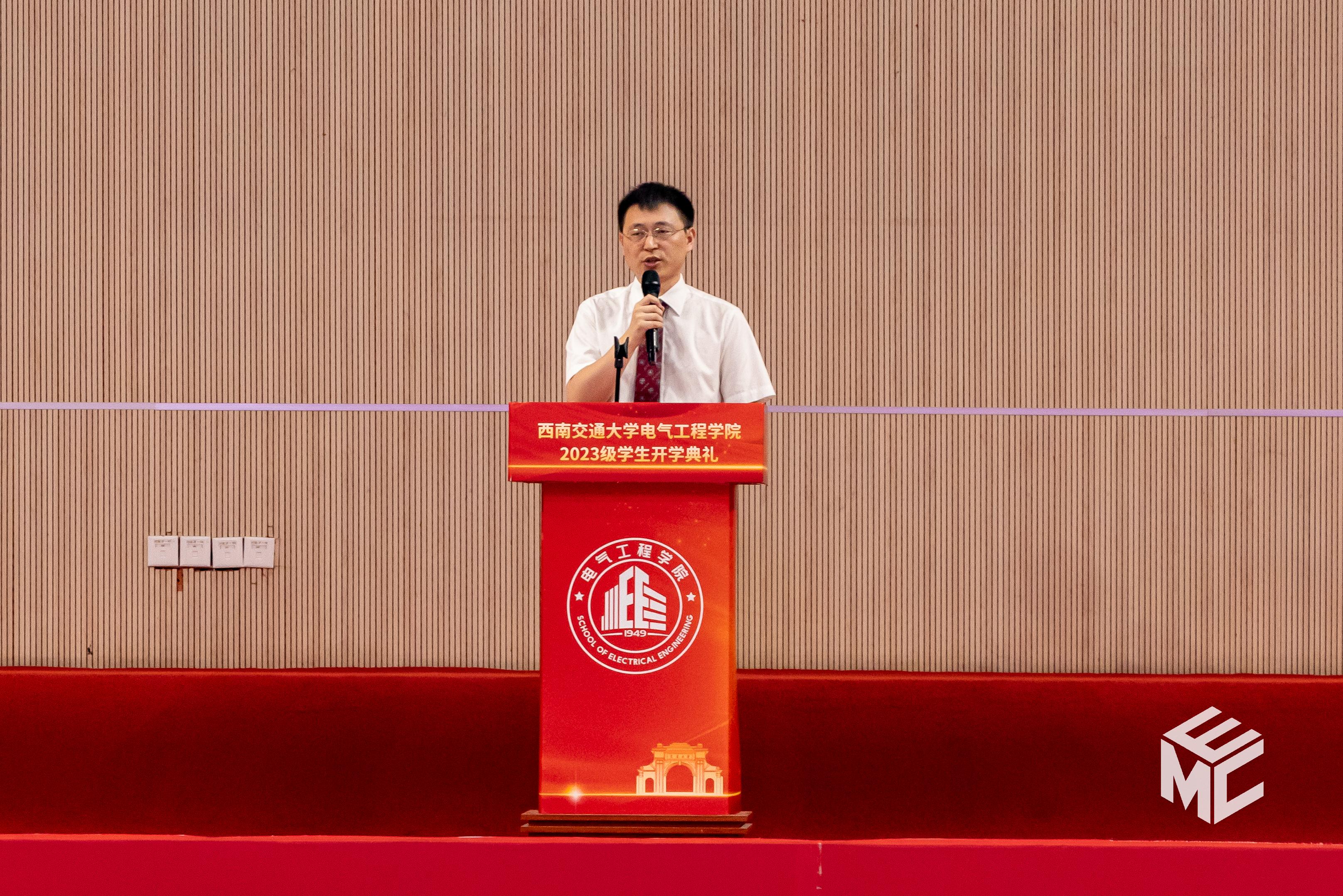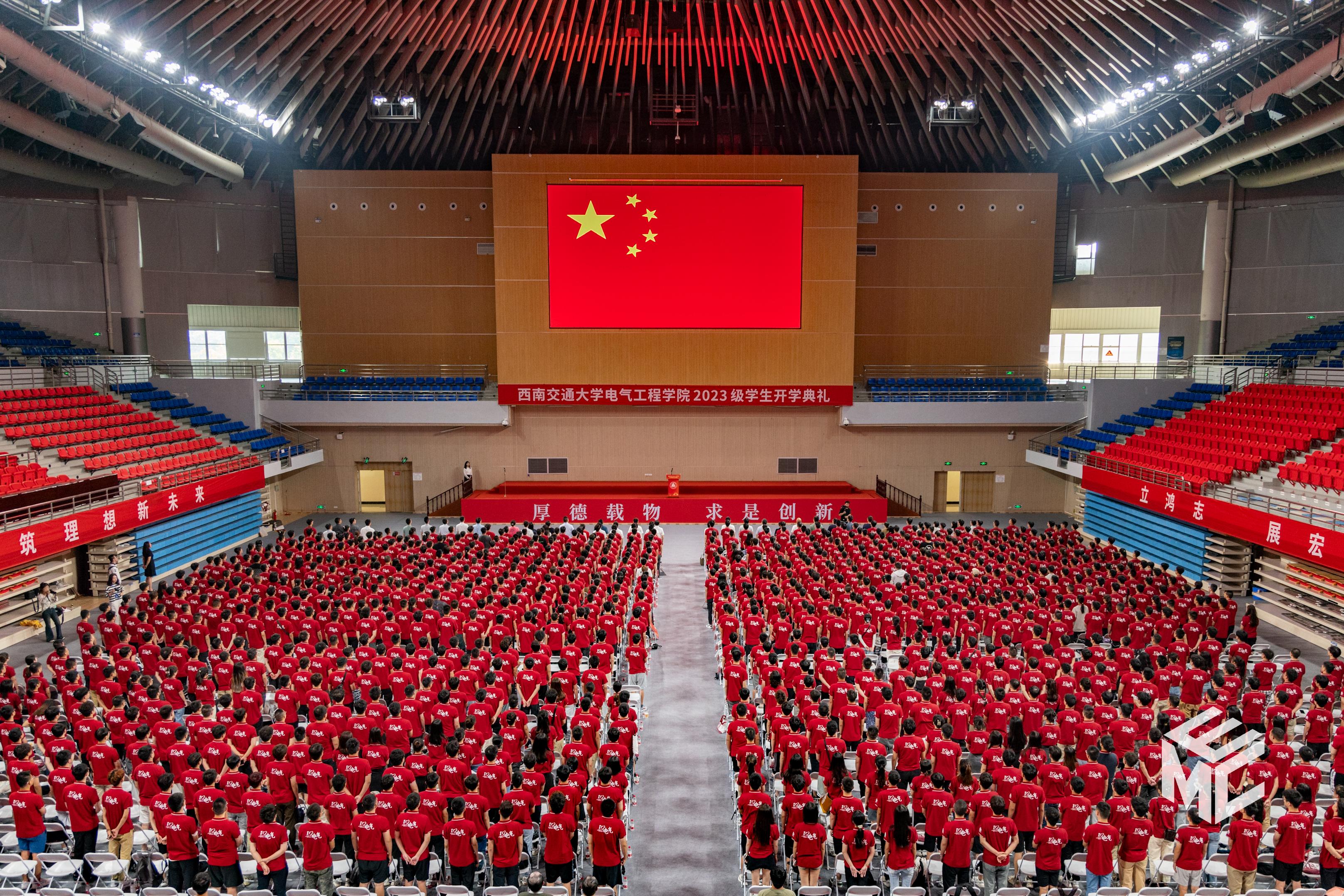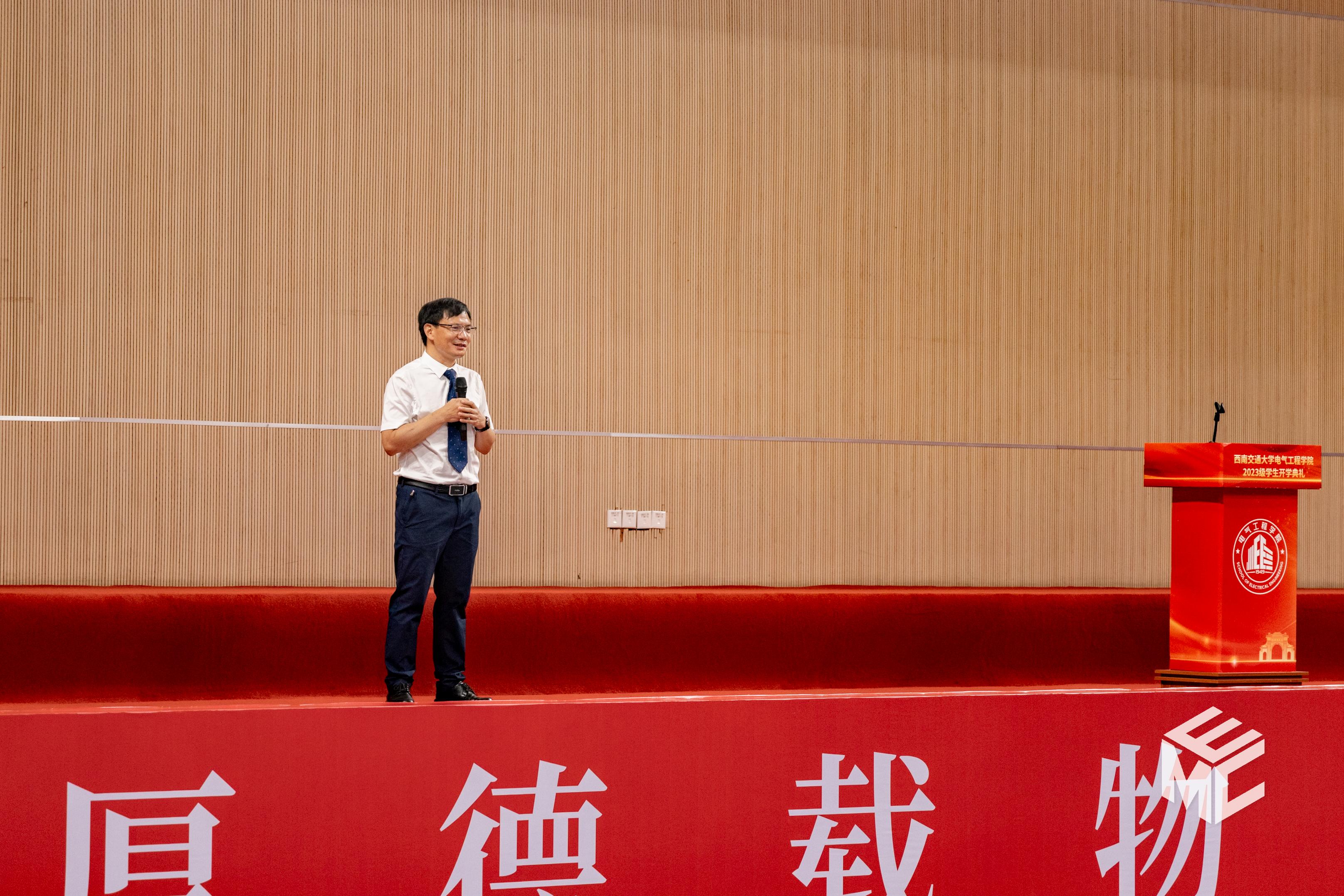 2023年9月3日上午10点,av大平台 2023级学生开学典礼在犀浦校区飞碟体育馆顺利举行。av大平台 院长何正友,党委副书记谢力、王轶,副院长陈民武、胡海涛、刘志刚,院长助理黄德青,电力工程系系主任吴积钦,电工电子系系主任卿安永,办公室主任樊兵兵,学生支持办公室主任张婷婷,团委书记张异,2023级本科班导师,2023级全体本硕博新生参加开学典礼。典礼由谢力副书记主持。