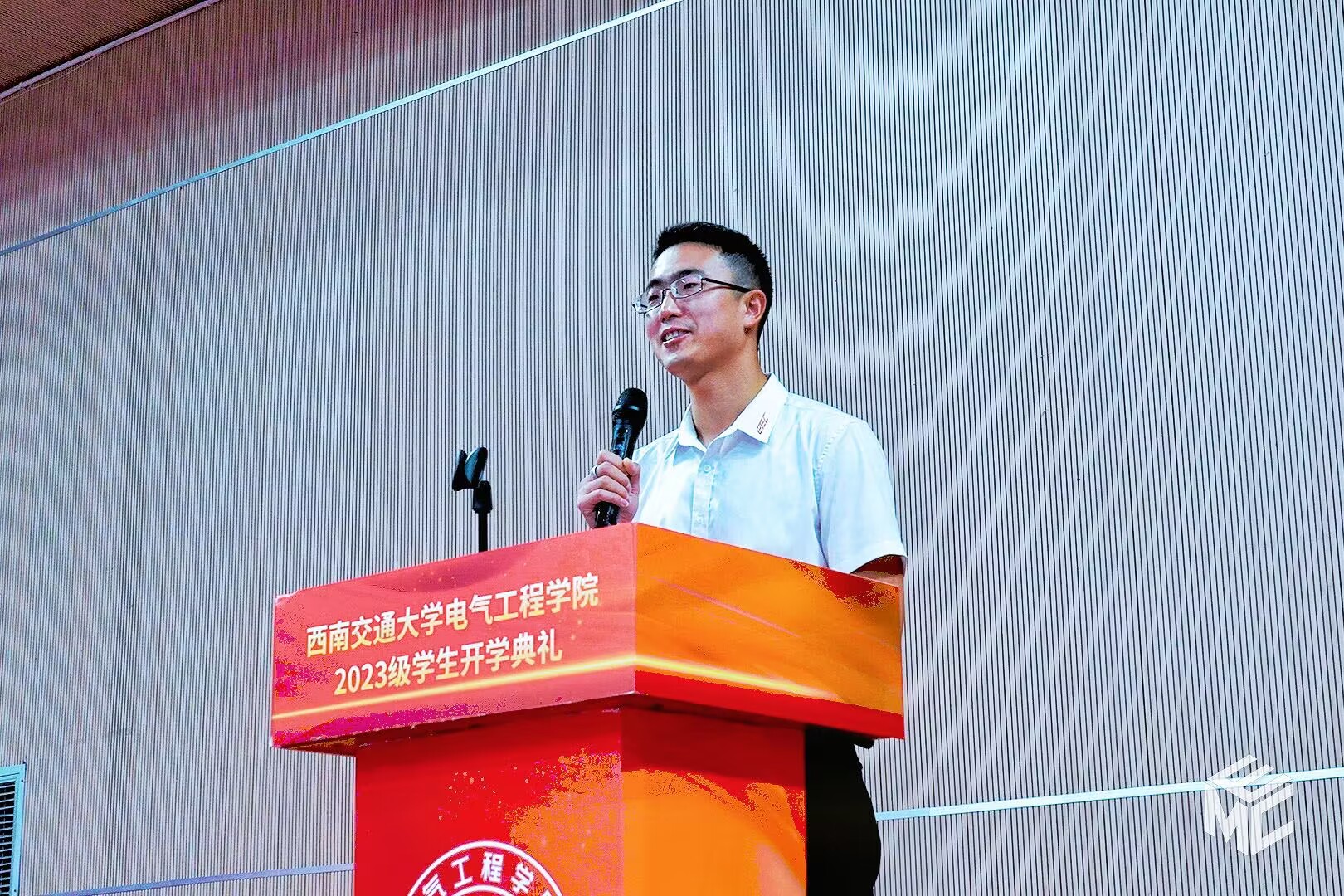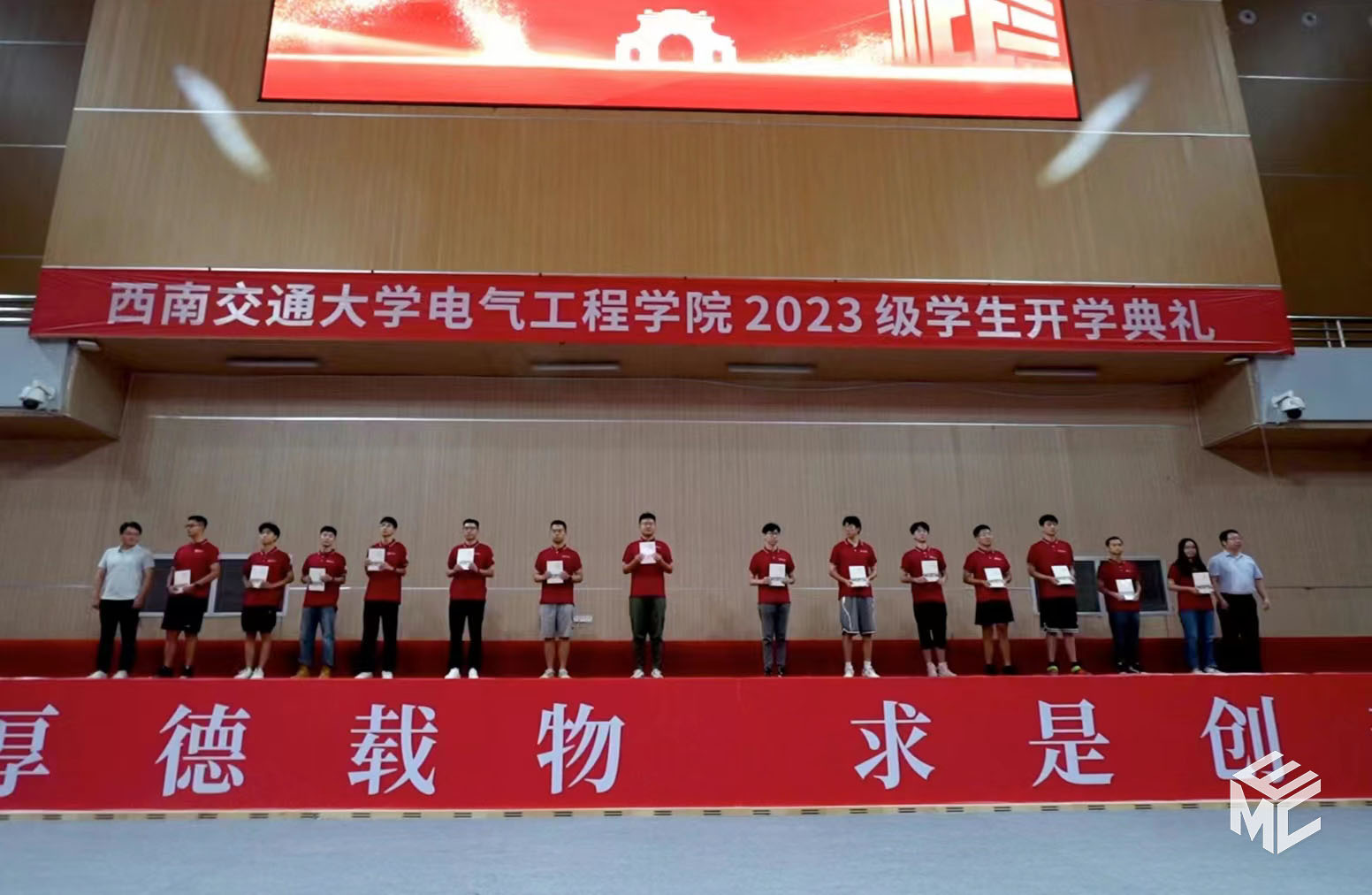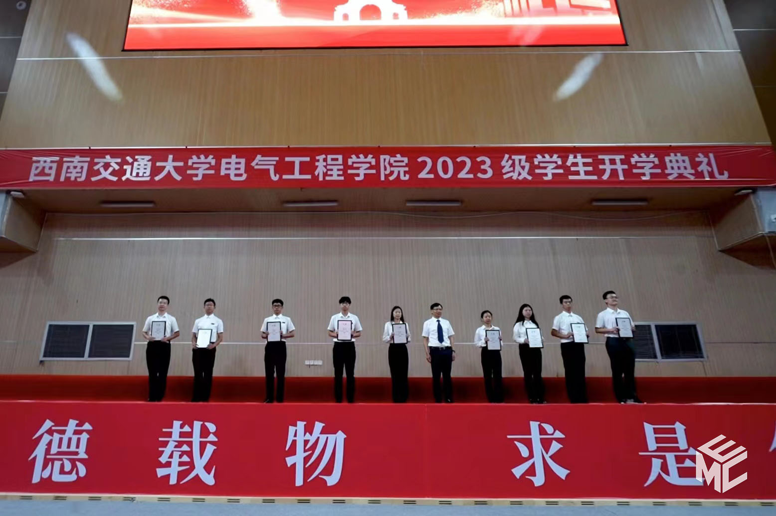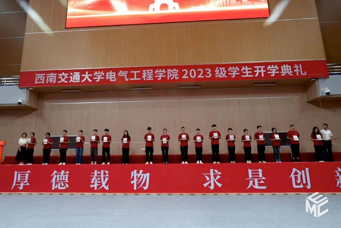 2023年9月3日上午10点,av大平台 2023级学生开学典礼在犀浦校区飞碟体育馆顺利举行。av大平台 院长何正友,党委副书记谢力、王轶,副院长陈民武、胡海涛、刘志刚,院长助理黄德青,电力工程系系主任吴积钦,电工电子系系主任卿安永,办公室主任樊兵兵,学生支持办公室主任张婷婷,团委书记张异,2023级本科班导师,2023级全体本硕博新生参加开学典礼。典礼由谢力副书记主持。