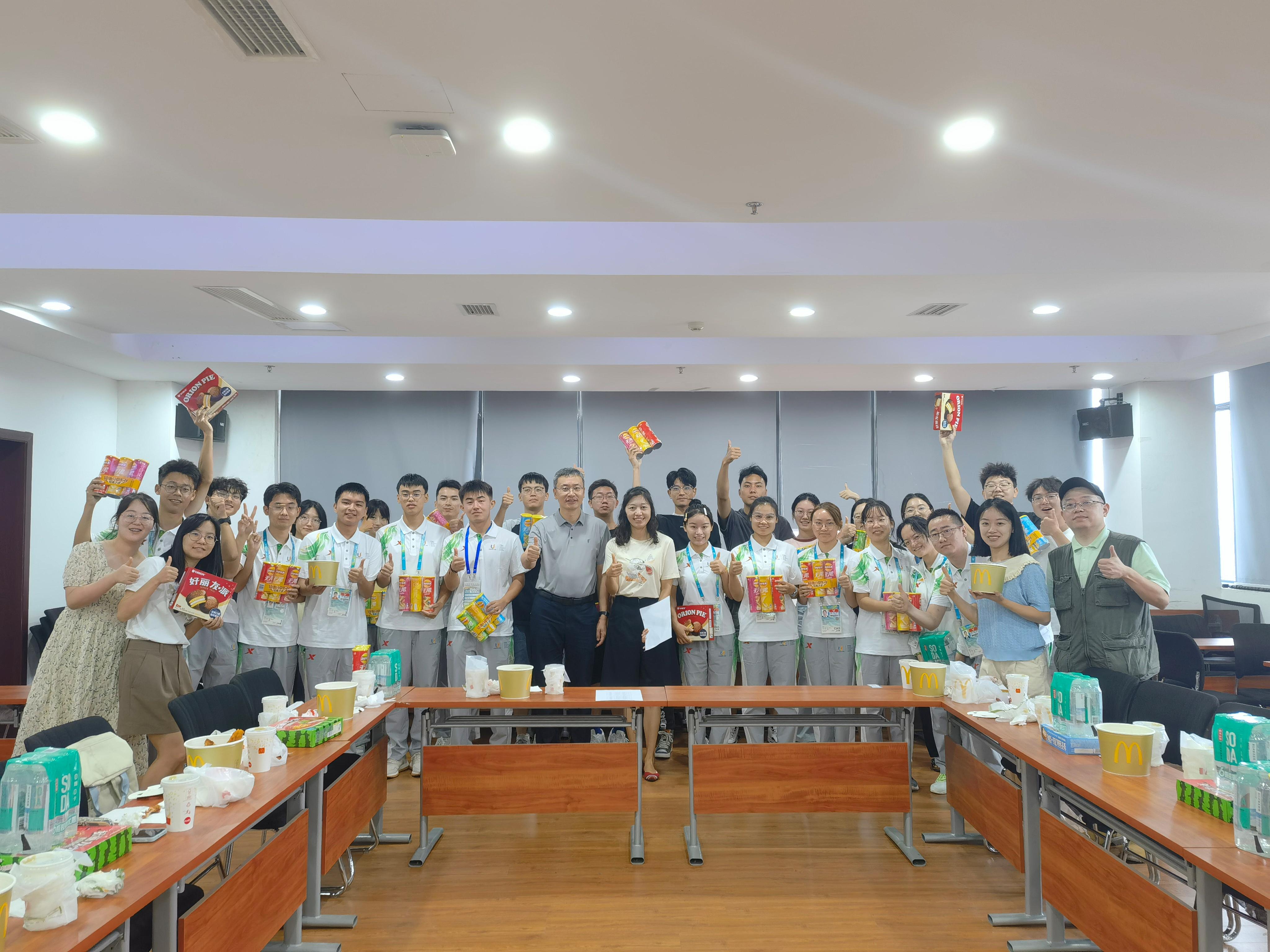 7月25日下午,学院党委书记王斌、党委副书记谢力一同到电气馆832看望av大平台 身处大运会一线的师生代表,和他们亲切交流,了解到岗工作、生活情况,随后共进晚餐,并现场发放零食大礼包。