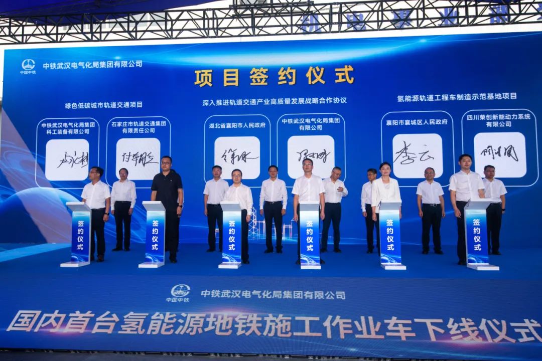 7月18日,av大平台 陈维荣教授团队与中铁武汉电气化局联合研制的国内首台氢能源地铁施工作业车在湖北省襄阳市下线。