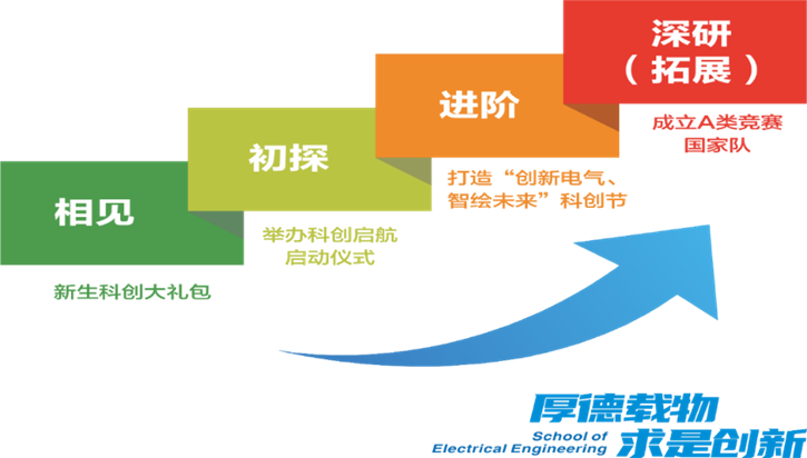 av大平台 全面统筹教师、科研、教学、实验室等资源,为学生提供科技创新能力提升平台,形成“相见—初探—进阶—深研(拓展)”的“创新电气、智绘未来”阶梯式科创竞赛成长体系。学院师生积极参加学科竞赛,近10年来,学院共有近1余名本科生参加科创竞赛。2021级本科生科创实训参与率达100%,学生参加科创竞赛共获得国家级奖项360余人次,省部级奖项1200余人次