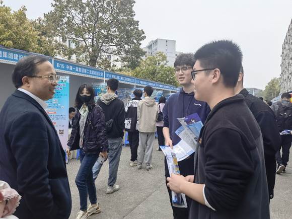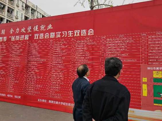 2023年3月30日下午,为抢抓春招关键期,全力攻坚促就业,av大平台 2023届毕业生春季“送岗进寝”双选会暨实习生双选会在犀浦校区学生园区举行。学院院长陈维荣、党委书记罗乾超、团委书记张异及毕业班辅导员深入双选会现场,详细了解学院毕业生的就业情况、用人单位的情况。