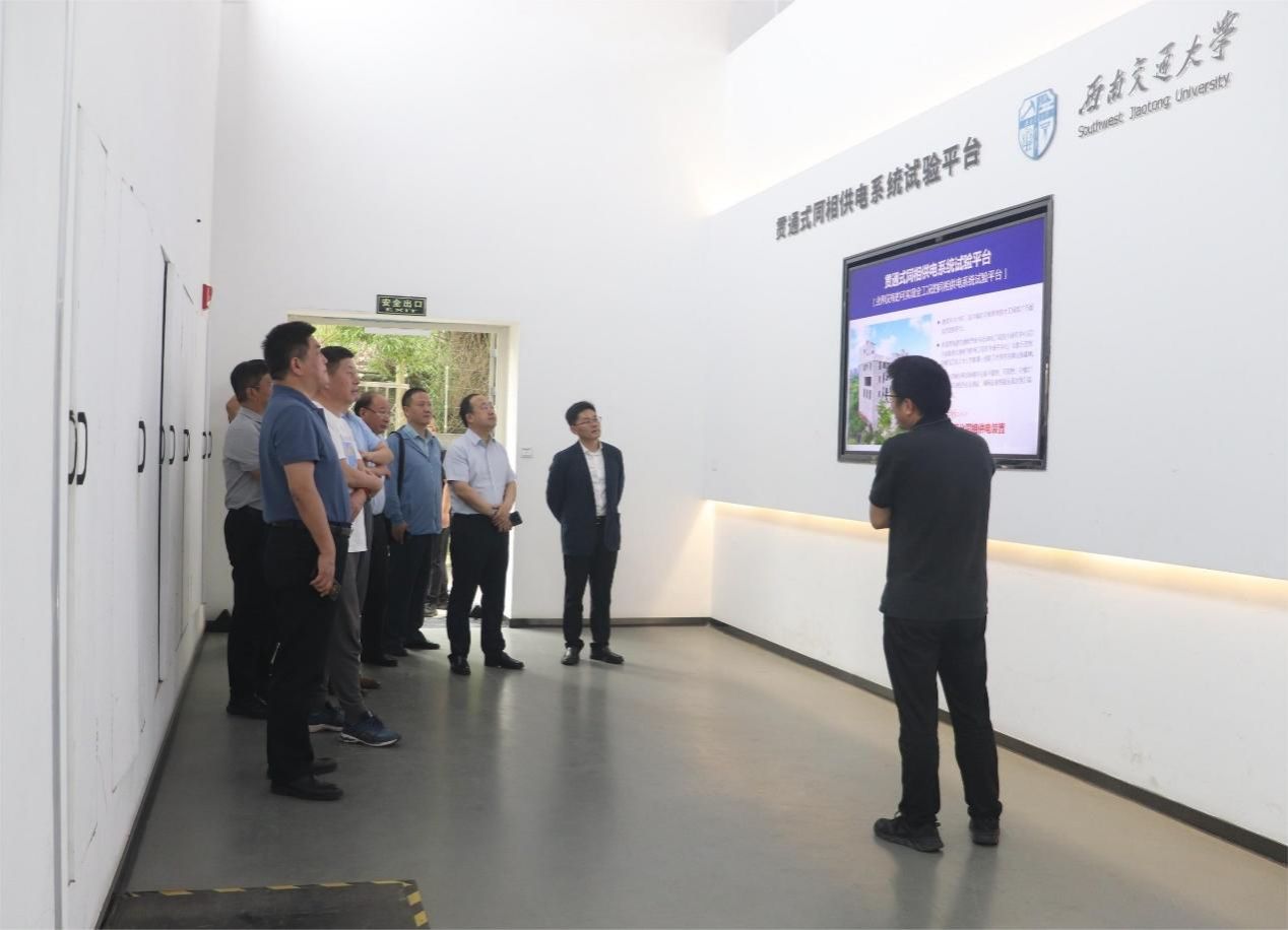 5月11日,中国铁路呼和浩特局集团有限公司党委委员、副总经理丁宇坤,中国铁路哈尔滨局集团有限公司副总经理刘喜春,中国铁路北京局集团有限公司副总经理郑雨,中铁第一勘察设计院集团有限公司副总工程师、总规划师任军辉、电化院院长刘刚等到av大平台 全国示范性劳模和工匠人才(李群湛)创新工作室考察调研同相、双边供电技术。av大平台 党委常委、副校长刘长军出席调研会,创新工作室领衔人李群湛陪同调研。