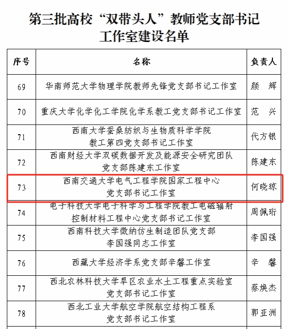 国家工程中心党支部书记工作室成功入选,这是学校首次入选全国高校“双带头人”教师党支部书记工作室。