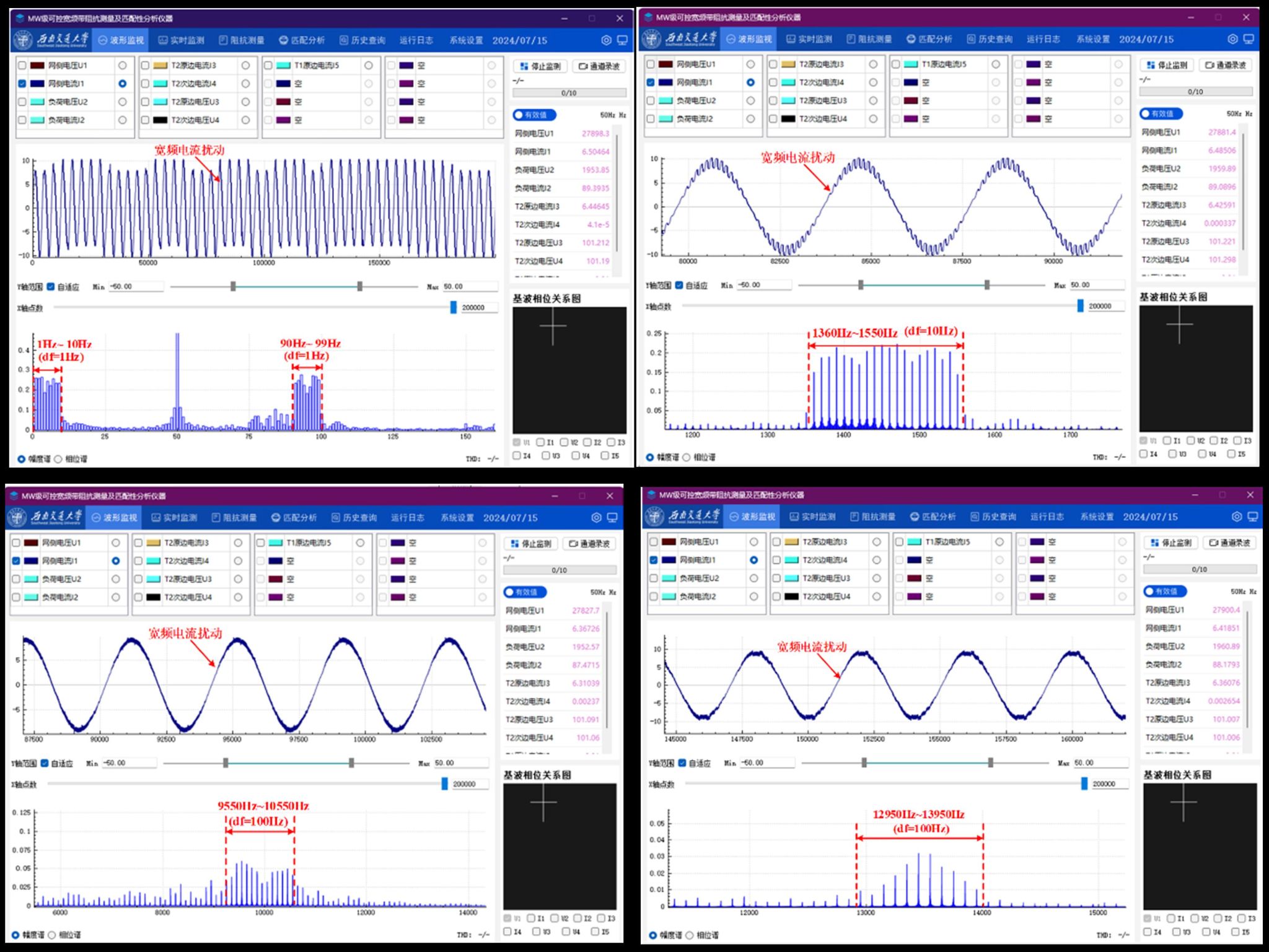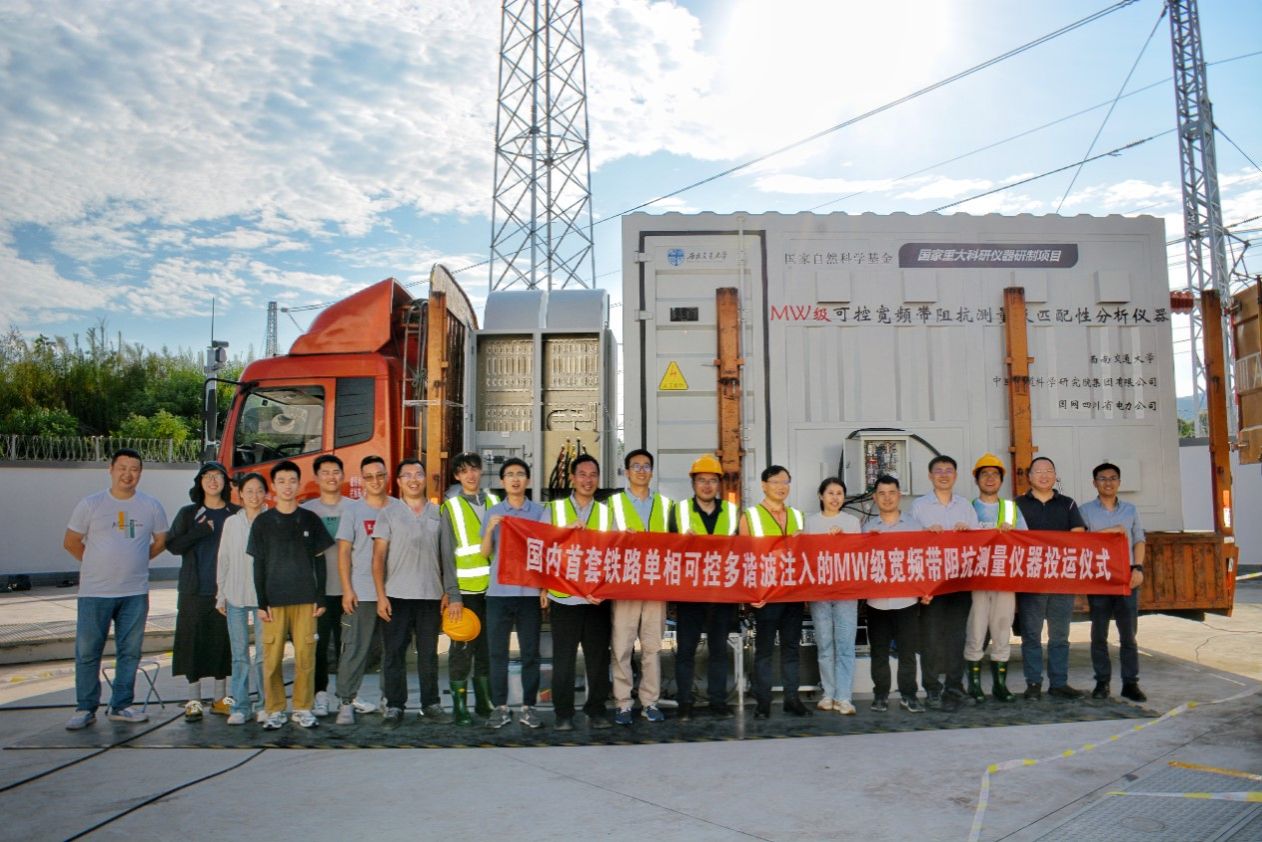 2024年7月15日,在国家重大科研仪器研制项目《MW级可控宽频带阻抗测量及匹配性分析仪器》和成都铁路局配套试验项目资助下,由av大平台 何正友、胡海涛教授团队牵头,联合中国铁道科学研究院集团有限公司、国网四川省电力公司共同研制的MW级可控宽频带阻抗测量及匹配性分析仪器,在新开通的渝昆高铁友助村牵引变电所(重庆永川区)圆满完成了现场测试。此次现场测试得到了成都铁路局供电部、宜宾工电段、成都维管段等单位的大力支持,试验的成功标志着我国在大功率多谐波发射、宽频带阻抗测量、宽频带振荡理论的研究又向前迈出了坚实的一步。该仪器在低频谐波(1Hz)、高频谐波(20kHz)、宽频带谐波(1~1000个谐波同时发射)注入等核心指标处于领先水平,为铁路牵引供电系统、新能源并网系统、电力系统的阻抗建模与稳定性分析奠定了良好基础。该项目历时5年,顺利完成了项目立项、技术方案评审、生产研发、施工调试、现场示范等多个阶段,最终实现了仪器装置落地试验,并通过了四川省电子产品监督检验所的第三方认定。