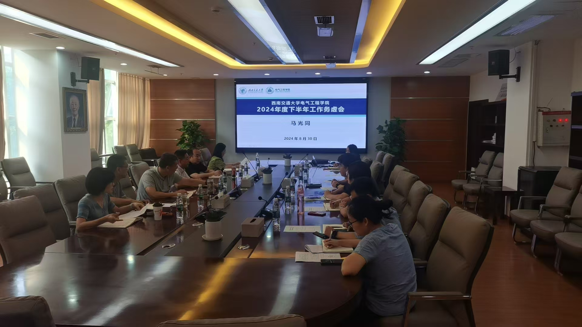 2024年8月30日上午,电气工程学院召开2024年度下半年工作务虚会议,会议由党委书记王斌主持,学院全体班子成员出席会议,院聘院长助理、团委书记、专职组织员、学生支持办公室主任列席会议。