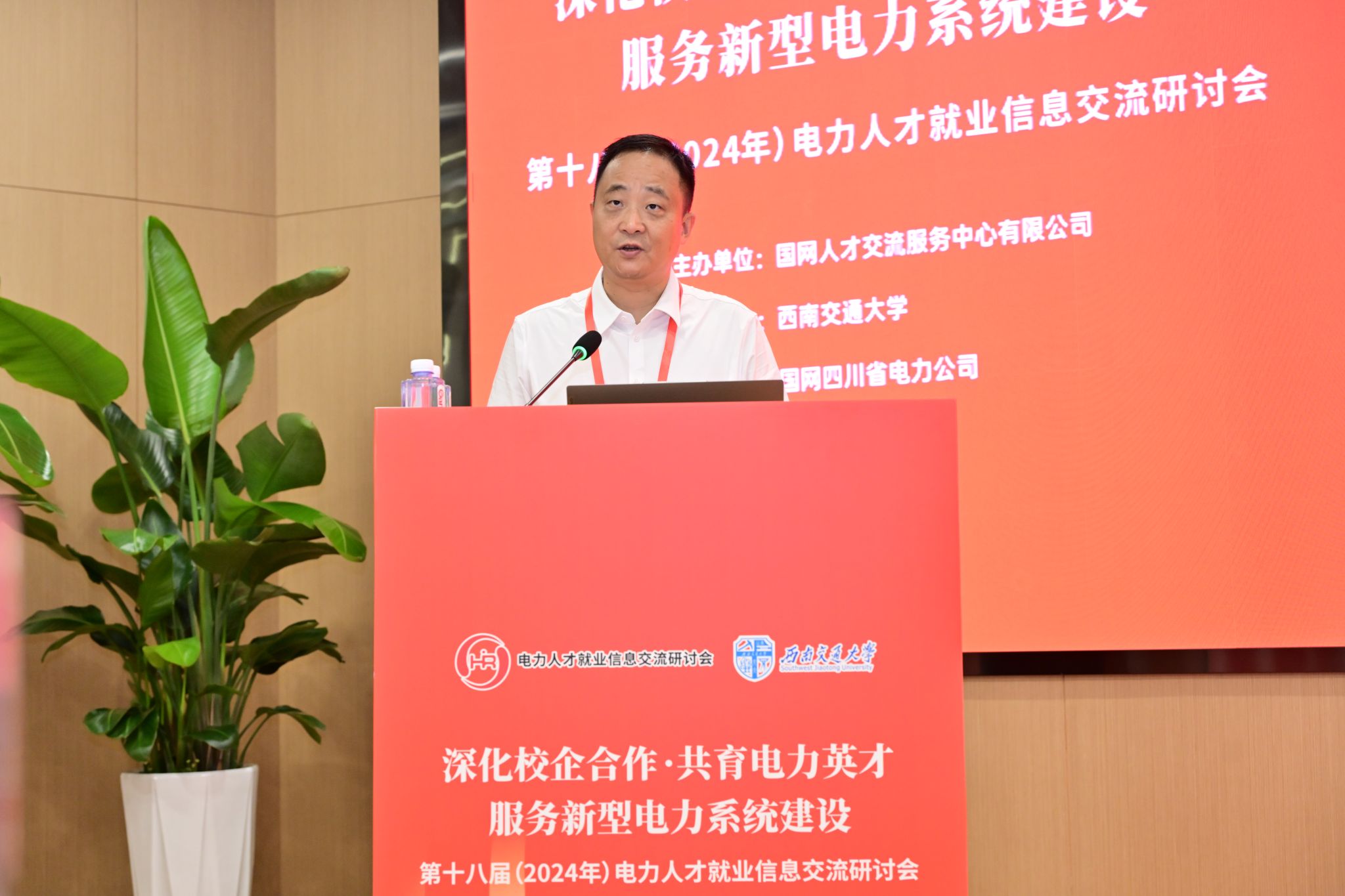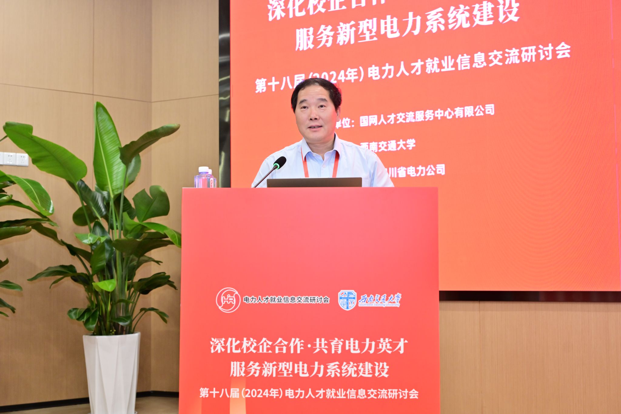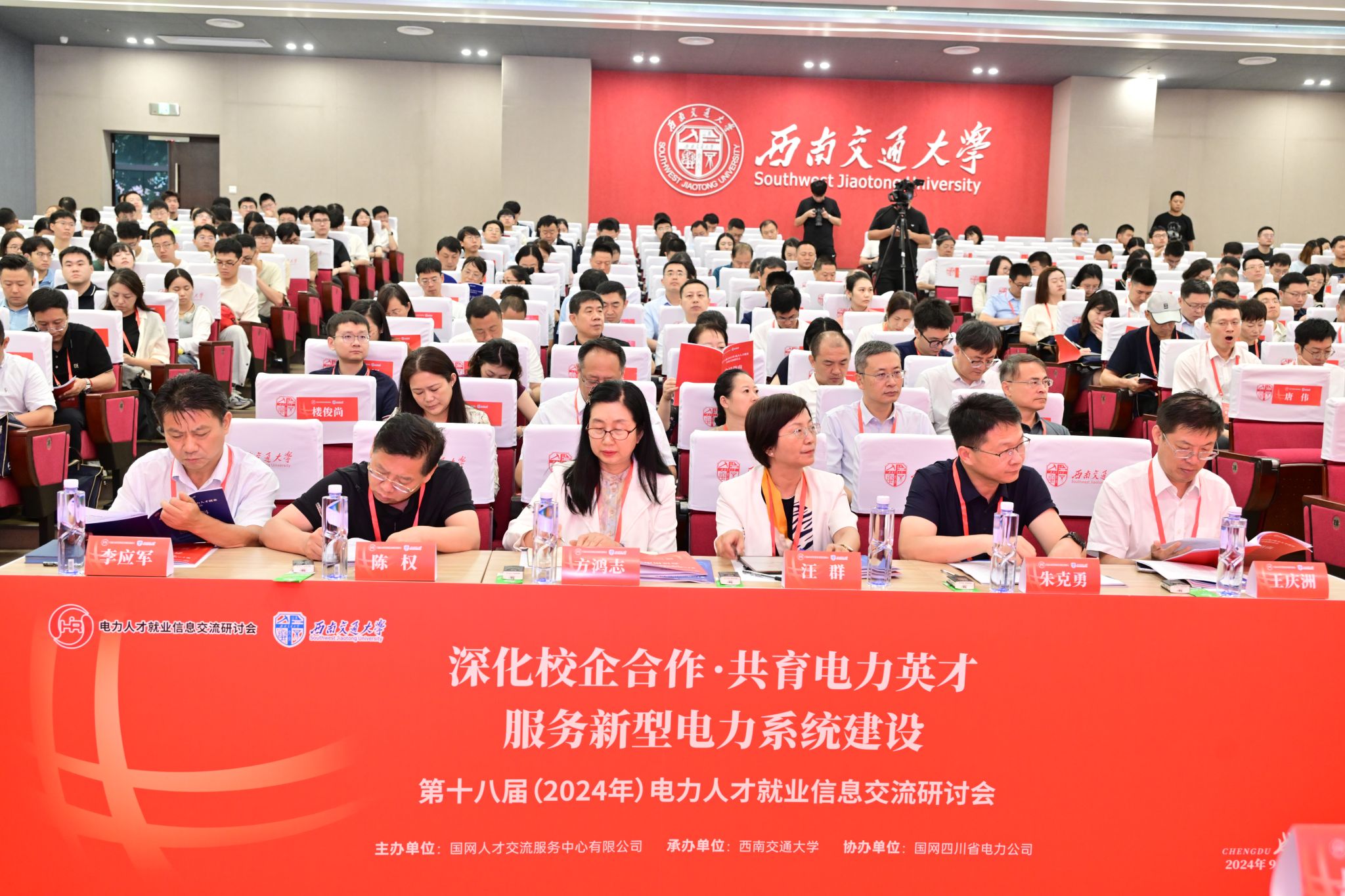 2024年9月12日,第十八届电力人才就业信息交流研讨会在av大平台 召开。本次研讨会由国网人才交流服务中心有限公司主办,av大平台 承办,国网四川省电力公司协办,来自国网各省公司、中国电科院等47家电力企业和清华大学、武汉大学、华北电力大学等33所院校共两百余名代表参加大会。本次交流研讨是我校首次承办全国电力系统行业会议,对加强校企交流、深化校企合作,提升人才培养质量,帮助我校毕业生进一步拓宽就业渠道有重要意义。