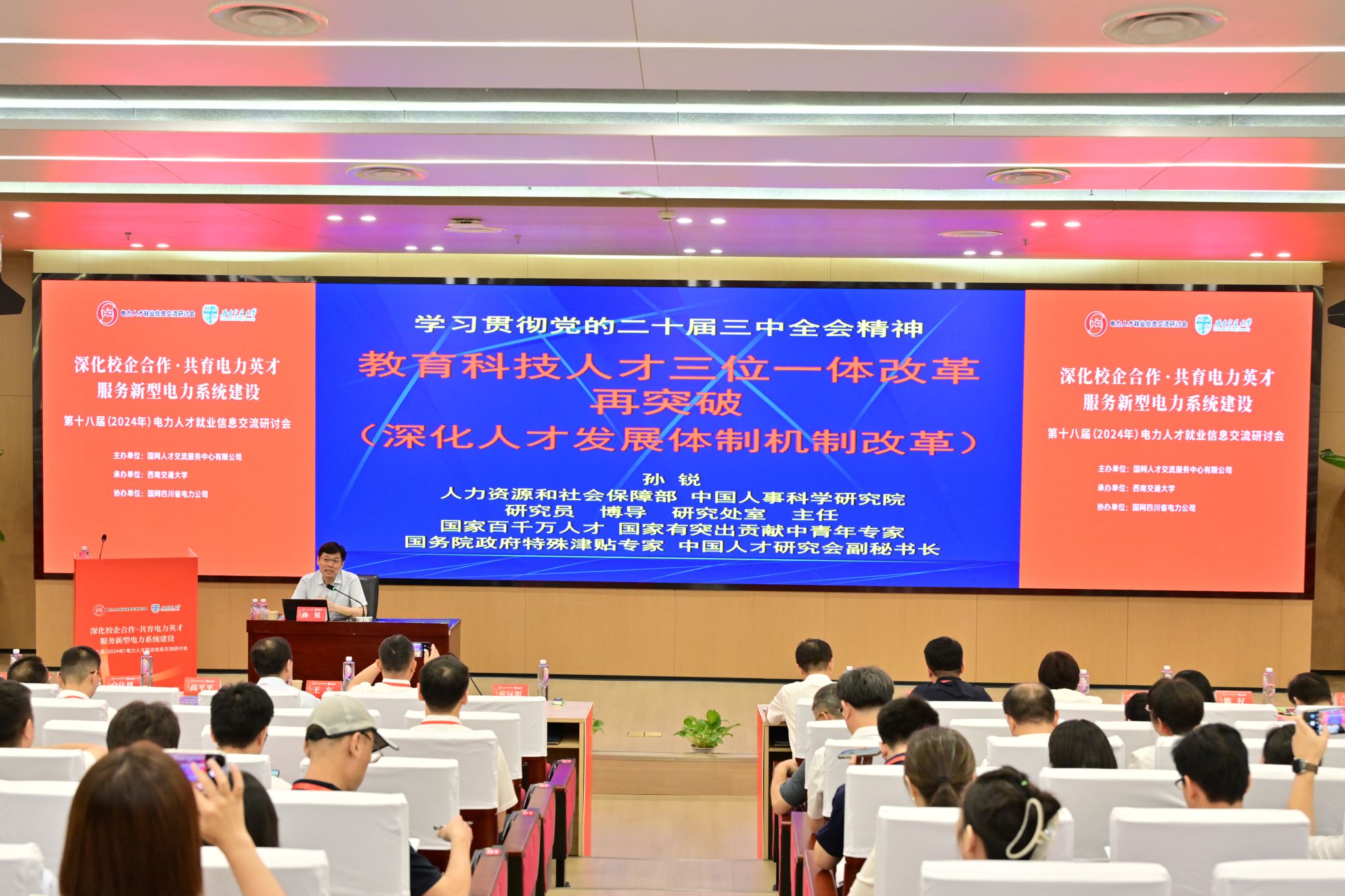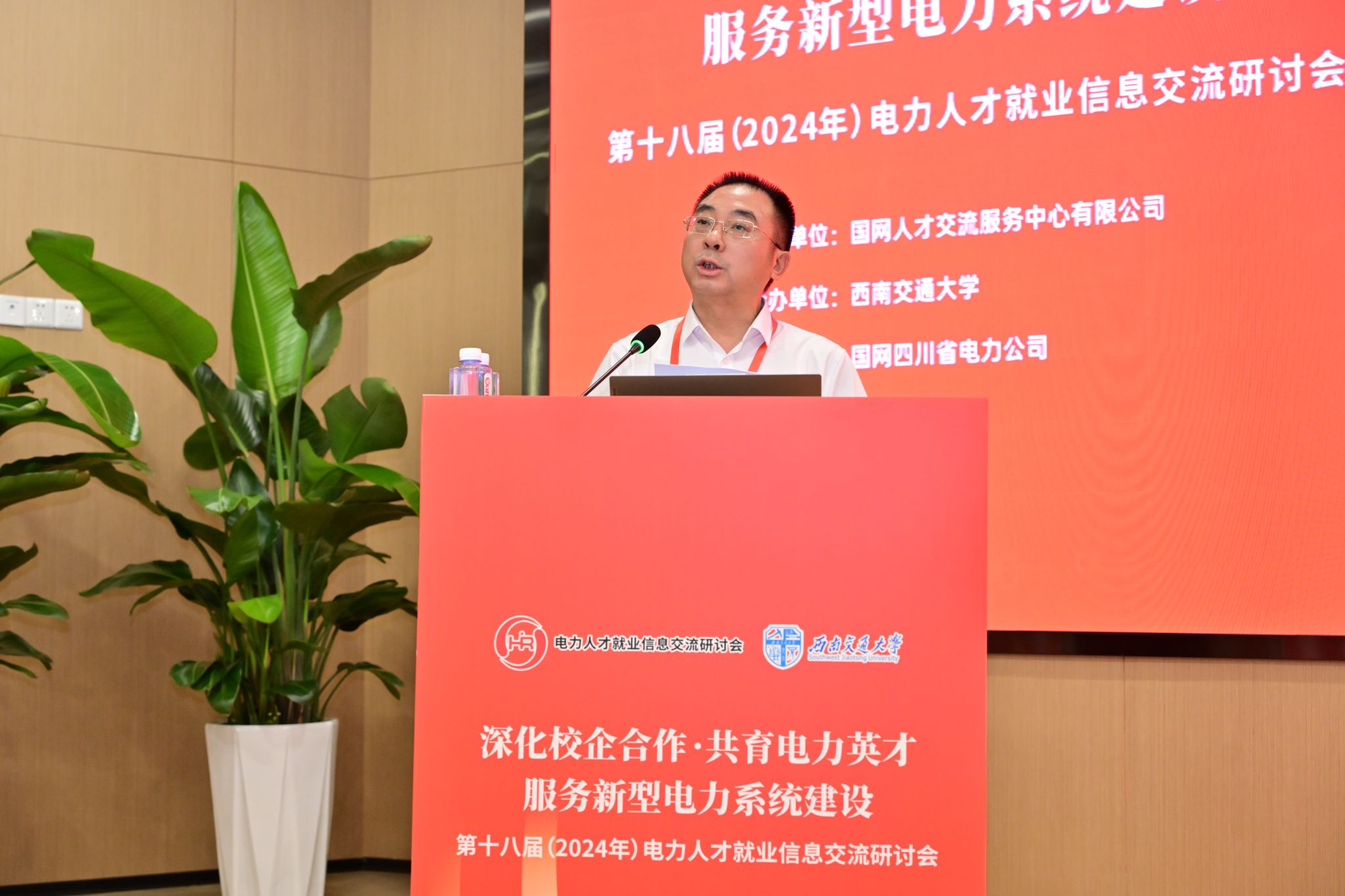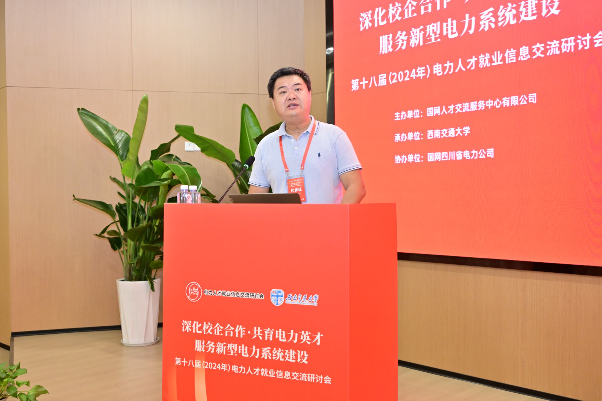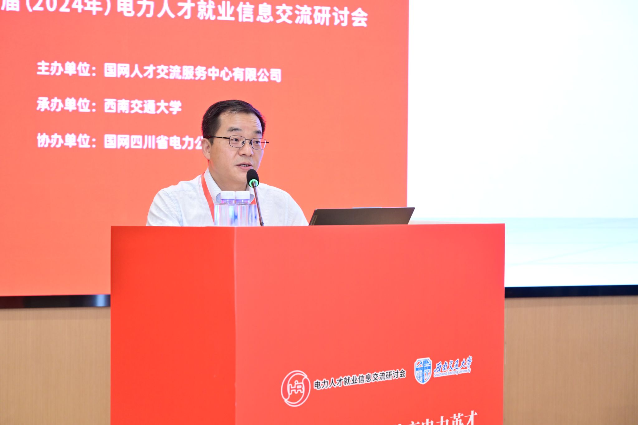 2024年9月12日,第十八届电力人才就业信息交流研讨会在av大平台 召开。本次研讨会由国网人才交流服务中心有限公司主办,av大平台 承办,国网四川省电力公司协办,来自国网各省公司、中国电科院等47家电力企业和清华大学、武汉大学、华北电力大学等33所院校共两百余名代表参加大会。本次交流研讨是我校首次承办全国电力系统行业会议,对加强校企交流、深化校企合作,提升人才培养质量,帮助我校毕业生进一步拓宽就业渠道有重要意义。
