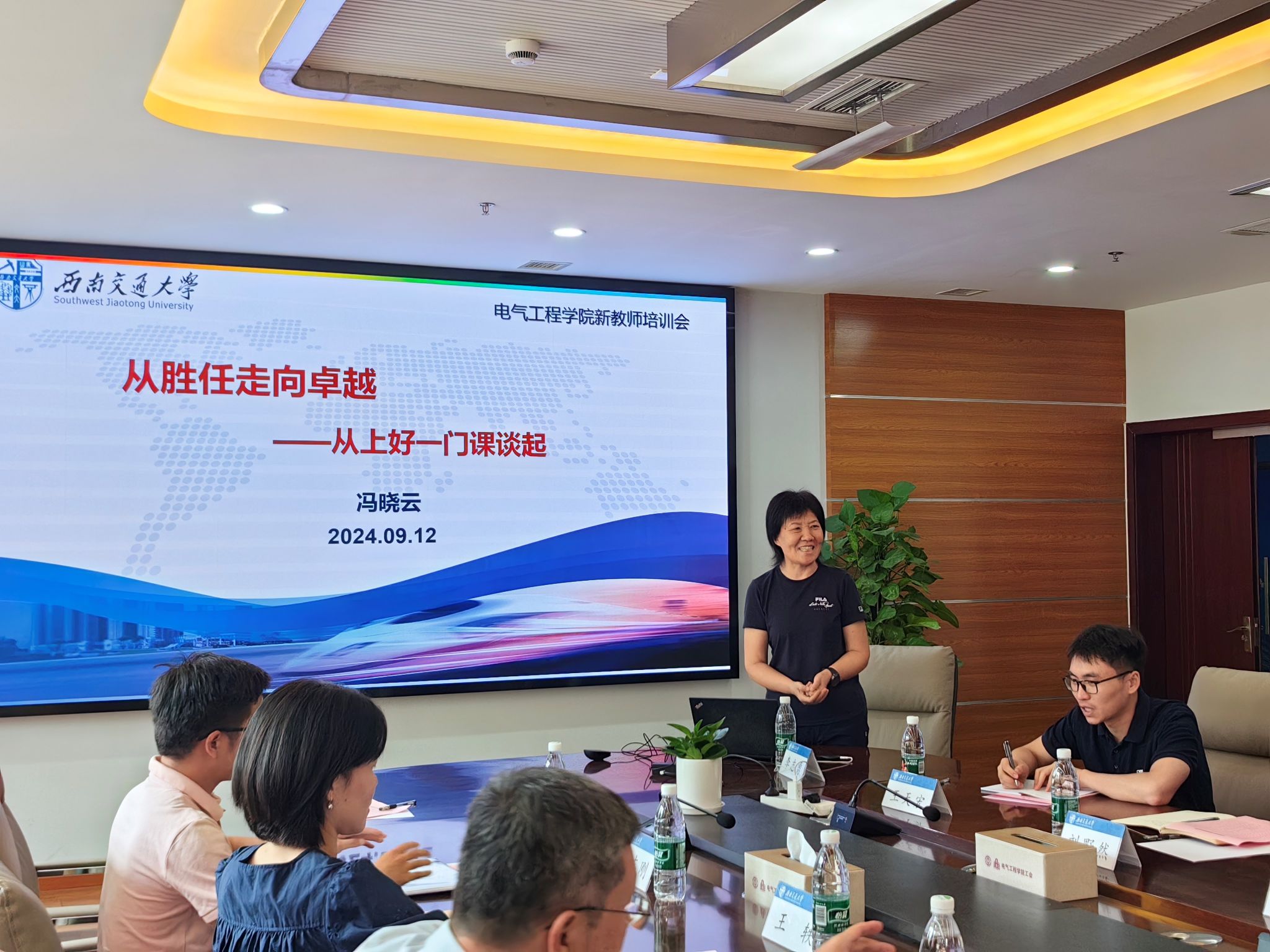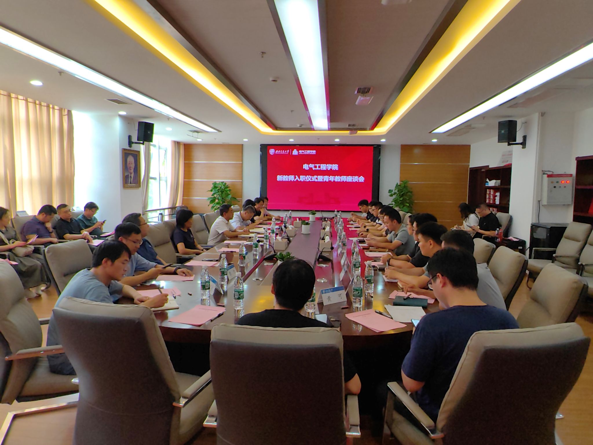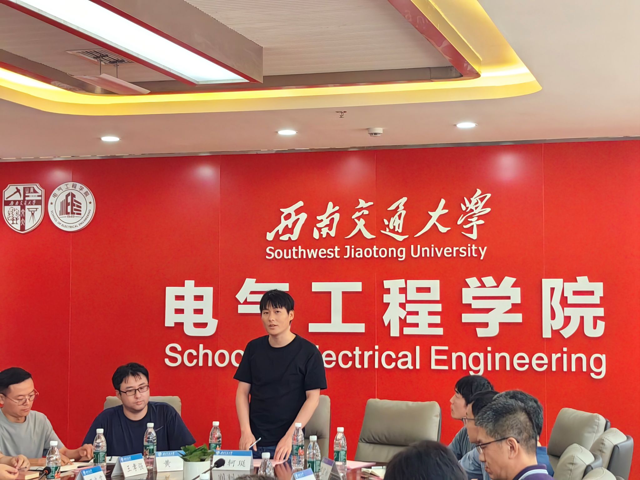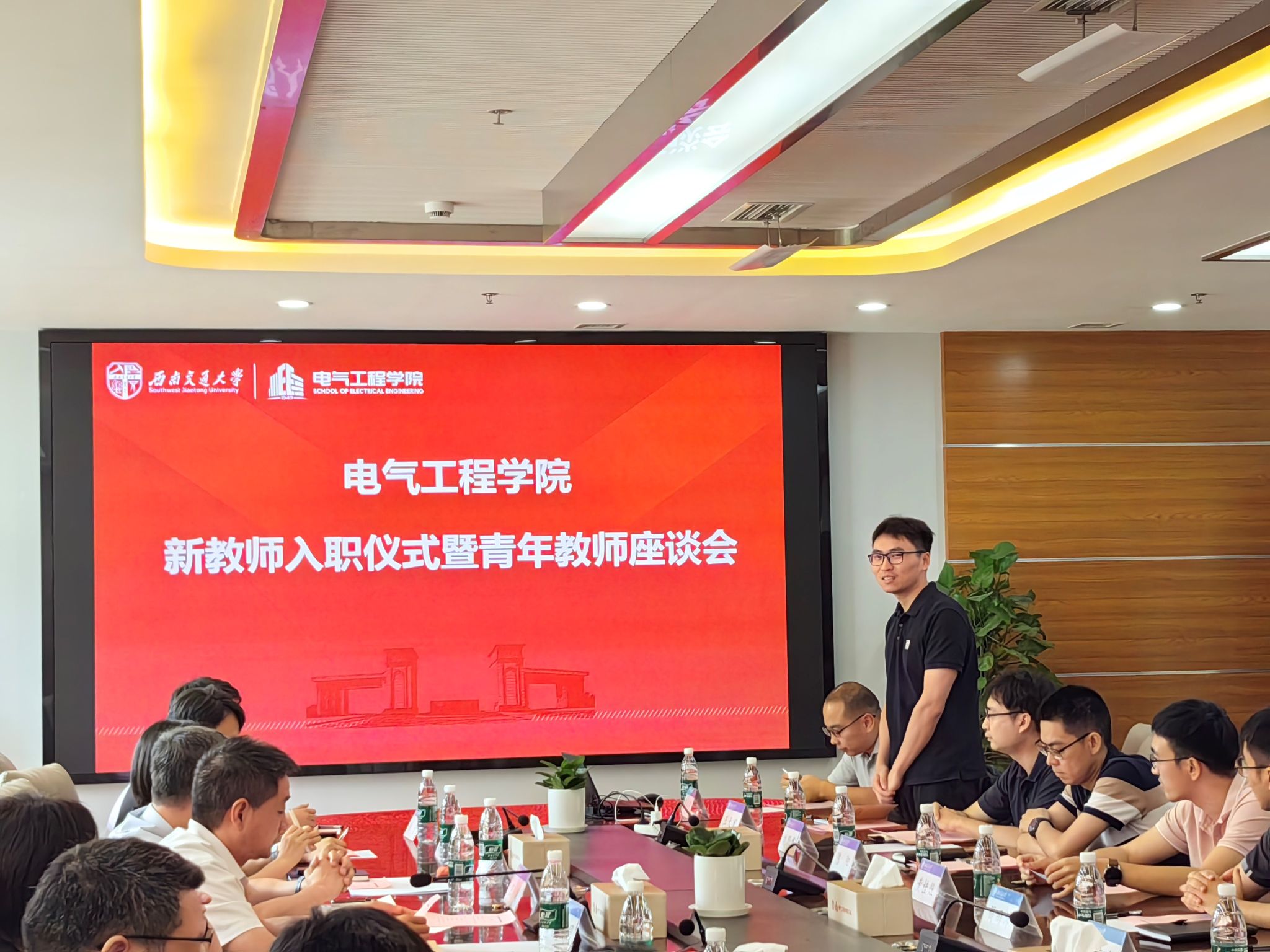 参会新教师简单介绍了自己的基本情况,大家纷纷表达了自己加入电气学院的喜悦心情,也表达了对未来教学科研工作的憧憬和压力。每位新教师随后佩戴上校徽,自此成为西南交大的一员,戴上校徽,也将交大人、电气人的身份深深嵌入心底。