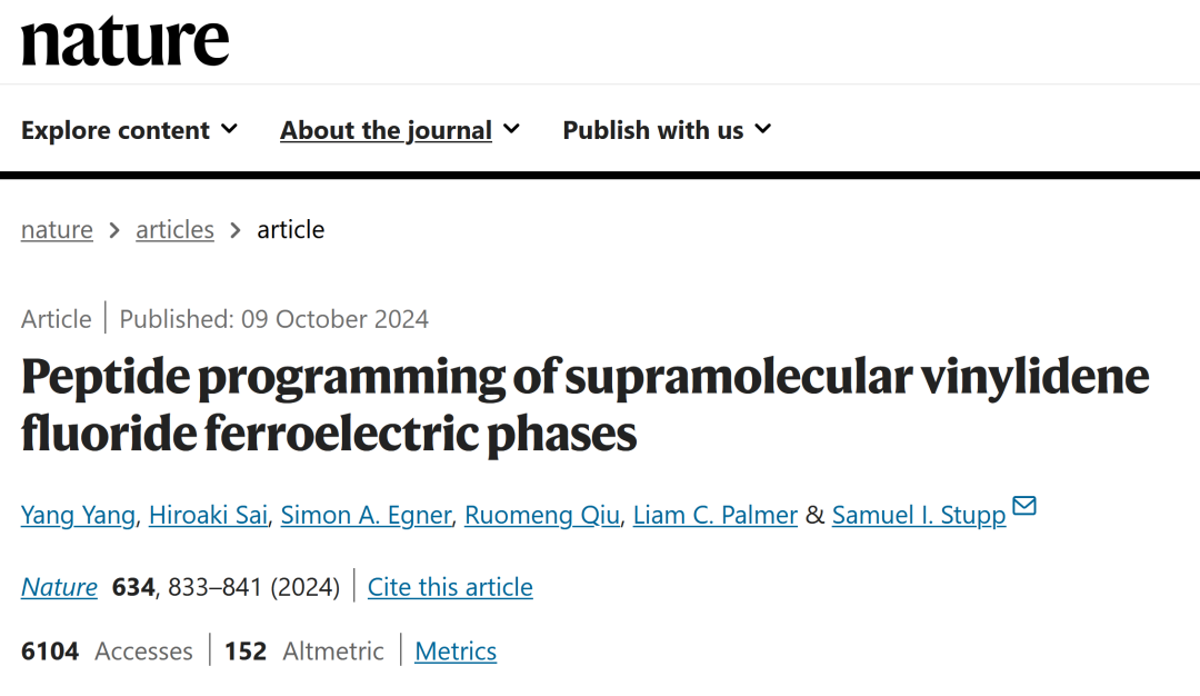 近期,国际著名学术期刊《自然》(Nature)正刊在线发表了电气工程学科、电工材料领域的最新研究成果。该成果的论文标题为:Peptide programming of supramolecular vinylidene fluoride ferroelectric phases,论文的第一作者杨洋博士为av大平台 2010级电气工程及其自动化专业本科毕业生。