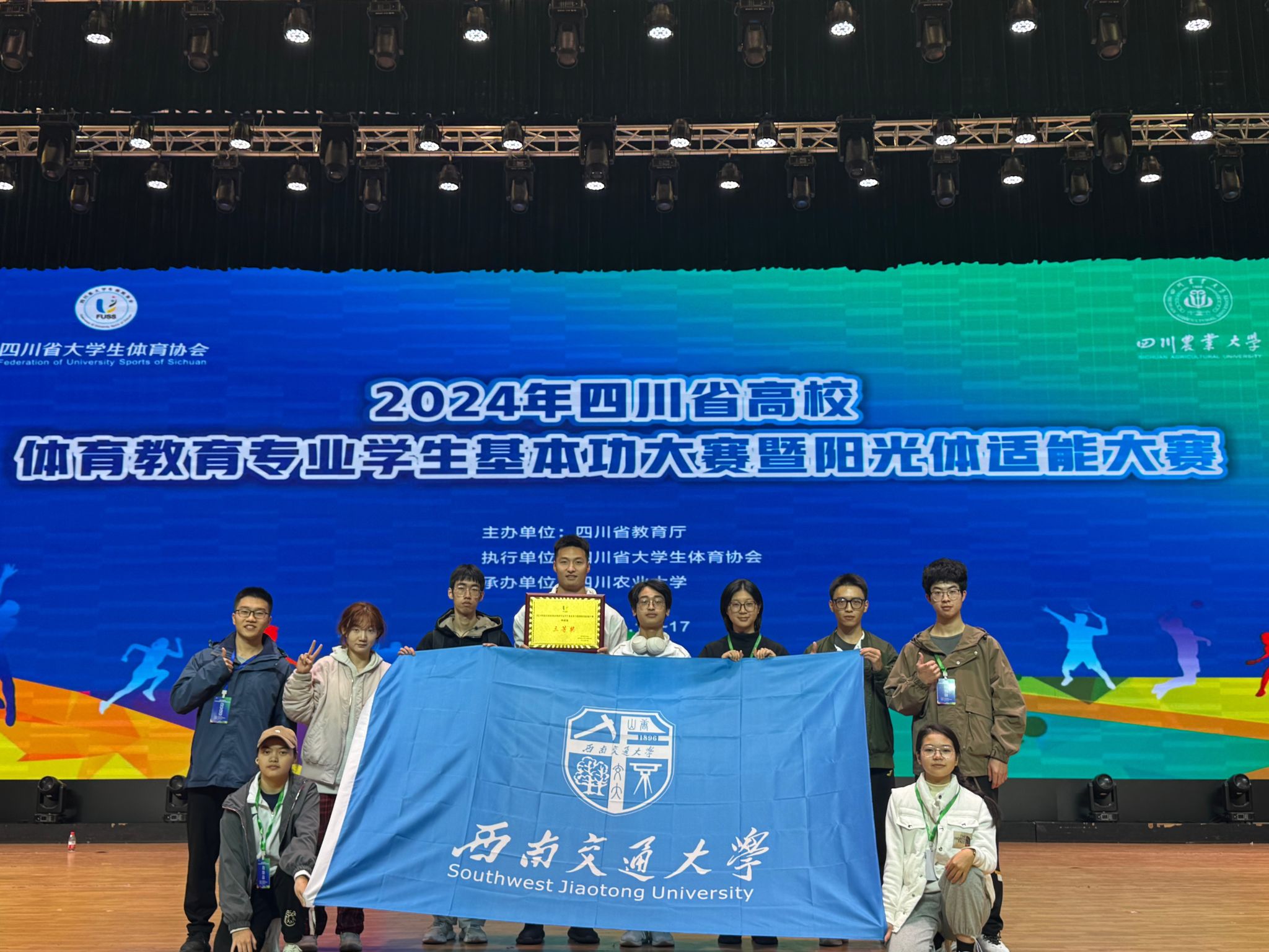2024年11月13日,我校首次组织学生参加四川省高校阳光体适能大赛。由av大平台 辅导员邹伟豪老师担任教练,罗霁轩老师担任指导老师,本科2023级贺富康、刘远航、肖印豪、周煜涵、杨楠、肖棵尹、易慧、高晓艳8名同学组成的av大平台 代表队在比赛中表现优异,斩获团队三等奖。
