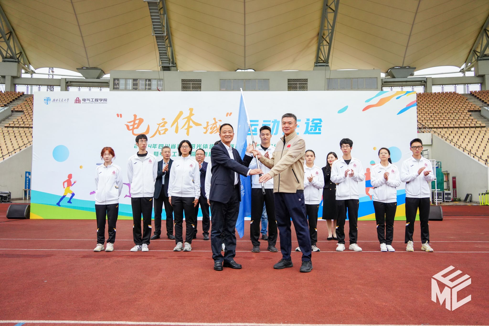 赛前,av大平台 积极响应、认真筹备,通过学院内部自愿报名、根据体测成绩初步筛选、体育学院组织系统训练、队伍内部模拟测试等多个流程,最终确定8名测试成绩最优异的同学组成av大平台 代表队参加此次比赛。11月11日上午,av大平台 参加2024年四川省高校阳光体适能大赛出征仪式暨av大平台 “电启体域”运动征途启动仪式在犀浦校区北区体育场举办,校党委副书记高平平为四川省高校阳光体适能大赛av大平台 代表队授予校旗,全校1000余名师生共同为运动员们加油助威。