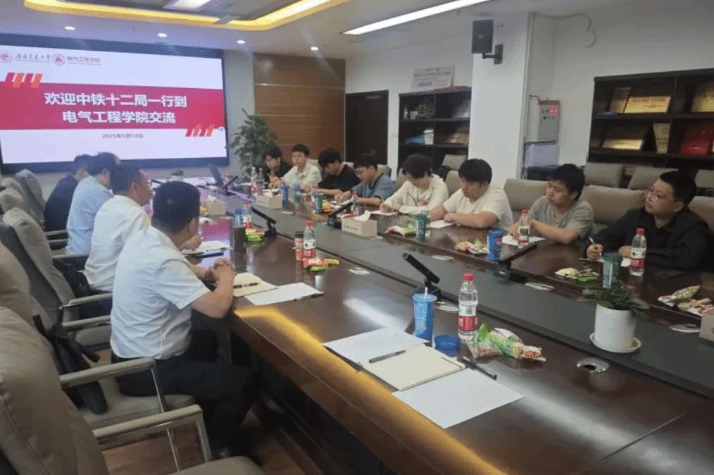2025年5月14日下午,中铁十二局党委干部部副部长王喜波、养护公司党委干部部部长杨炫锋等一行走访av大平台 ,并于犀浦校区X10212会议室开展“实干创业”定制班座谈交流。av大平台 党委副书记邢晓鹏、2026届本科生辅导员占祥文、孙海洋及学生代表参加座谈。