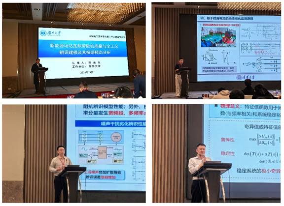 大会第一阶段,8位特邀专家作相关报告。湖南大学陈燕东教授作题为“新能源场站宽频带阻抗测量与全工况辨识建模及其振荡模态分析”的报告;清华大学张品佳教授作“基于微漏电流的电气设备绝缘在线感知理论与方法”的报告;浙江大学年珩教授作题为“计及频率耦合特性的新能源发电系统全工况阻抗测量方法”的报告;浙江大学辛焕海教授作题为“新型电力系统的动强度需求与广义短路比约束”的报告;郑州大学金阳教授作题为“储能系统多参量智能传感探测”的报告;西安交通大学刘增教授作题为“基于端口频率特性的构网型变流器并联系统小信号建模及振荡分析”的报告;南京南瑞继保电气有限公司马秀达高工作“柔性直流输电工程宽频振荡分析与抑制”的报告;国网四川省电力公司电力科学研究院姜晓锋高工作“川西弱电网场景稳定性分析与提升技术研究”的报告。