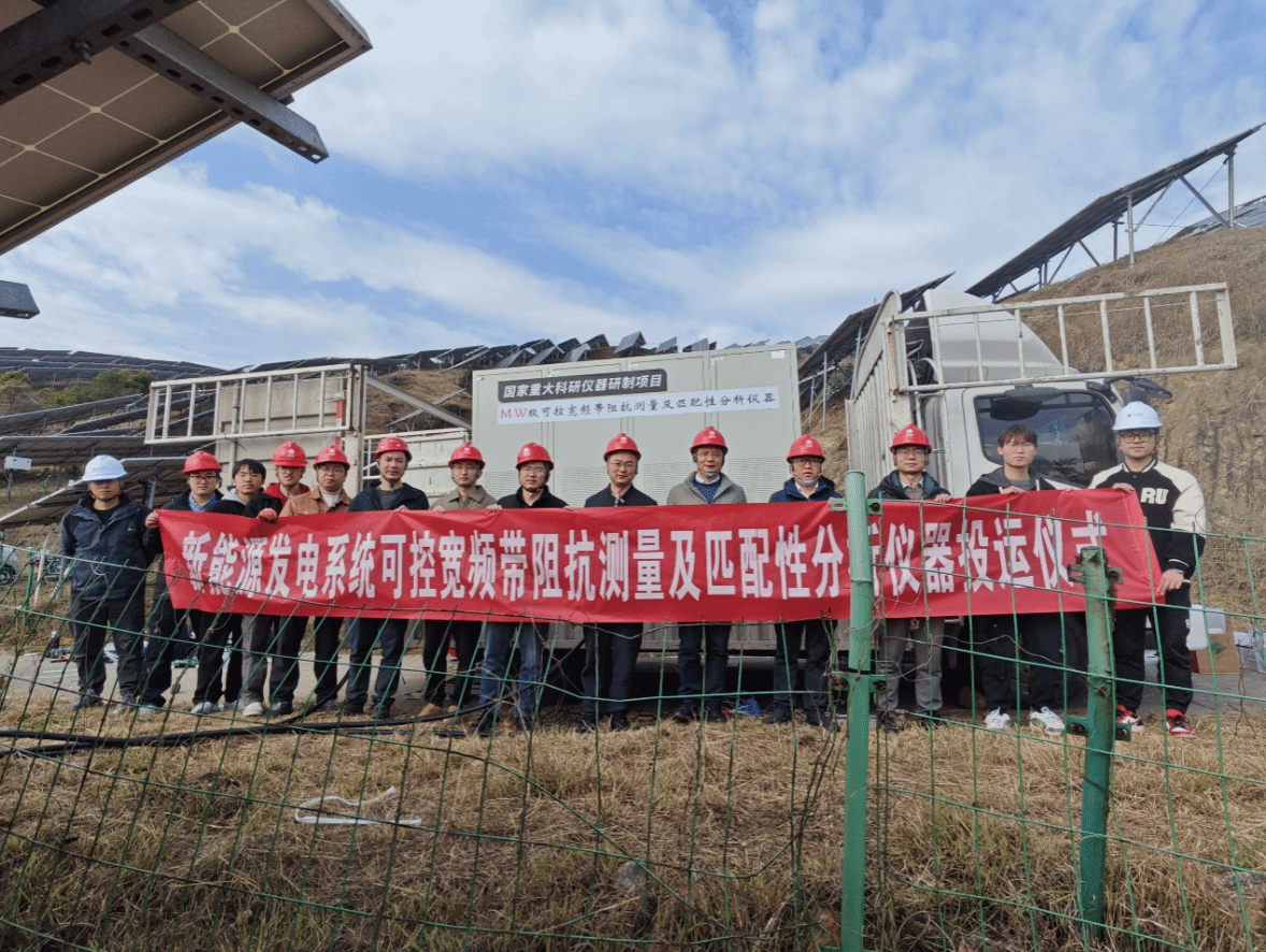 11月25日,在国家重大科研仪器研制项目《MW级可控宽频带阻抗测量及匹配性分析仪器》和国网四川省电力公司科技项目的资助下,av大平台 何正友、胡海涛、陶海东团队牵头,联合国网四川省电力公司电力科学研究院共同研制的新能源发电系统可控宽频带阻抗测量及匹配性分析仪器,在攀枝花市布德光伏电站圆满完成了光伏并网逆变器的宽频带阻抗测量实验。
