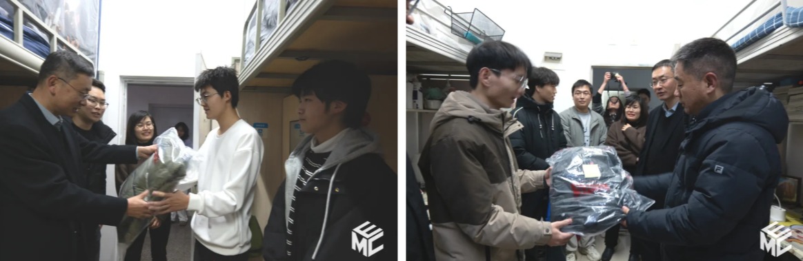 12月11日,av大平台 院长马光同、党委书记王斌深入宿舍园区,为学子送去“考研加油礼包”和“冬日暖心礼物”,在寒冷的冬日中送上浓浓暖意。