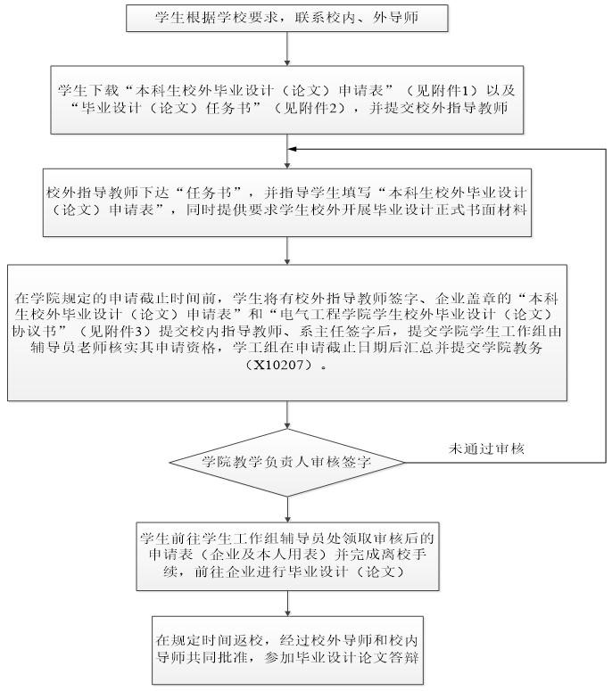 学生提交申请后,其申请资格由学院学生工作组认定,经学院审批同意后,方可开展校外毕业设计。有任何违规、作假行为者一律取消其申请资格。