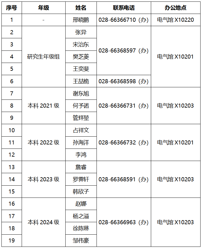 学生工作组工作地点及联系方式