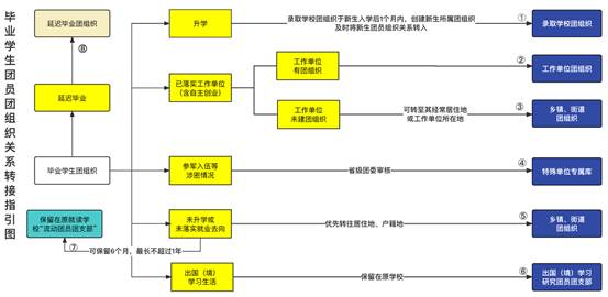 (2)升学至本校的:6月20日前,本校读研的毕业生先将团组织关系转入"团四川省委-av大平台 团委-2025级新生临时团支部",待9月份新的班级团支部建立后,再转接至班级团支部。